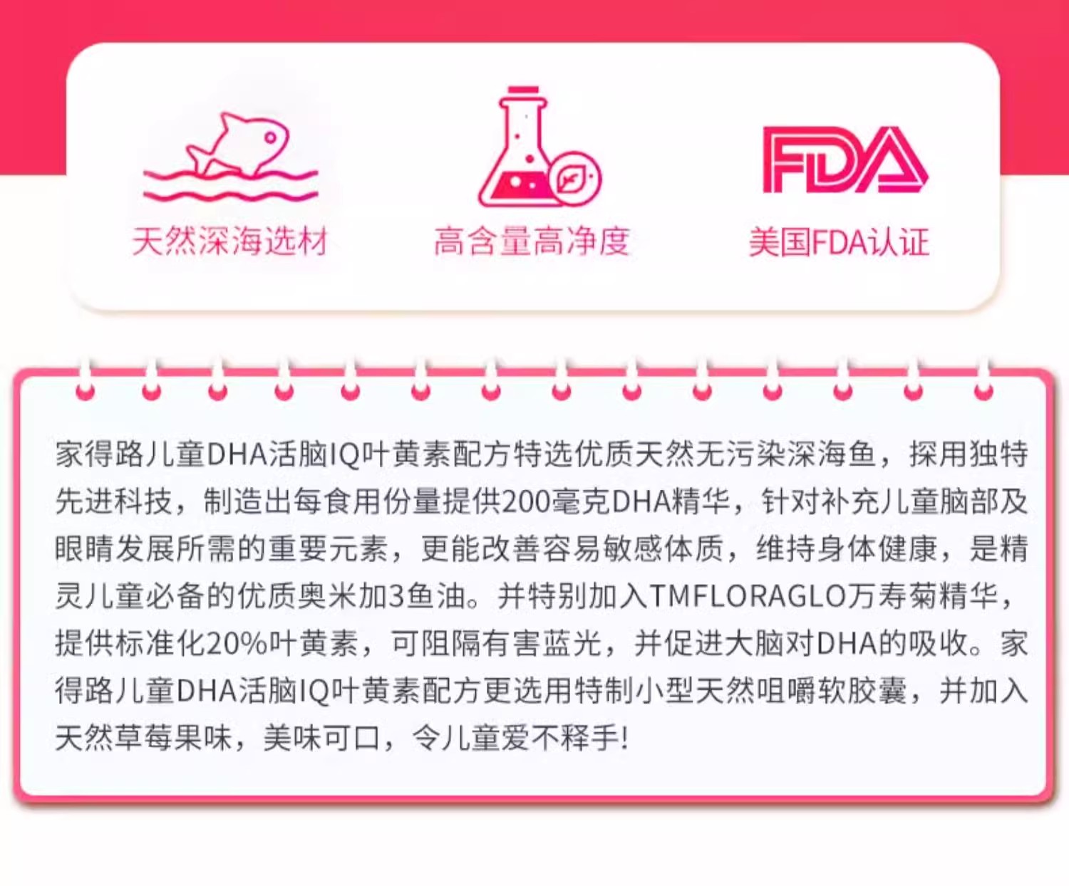 家得路CATALO 儿童DHA叶黄素草莓味 50粒