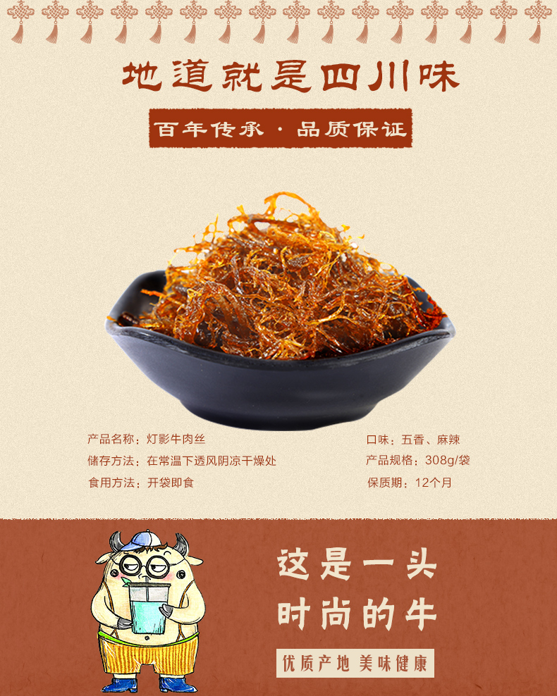 四川特产【百年灯影牛肉丝308g】四川达州特产重庆风味