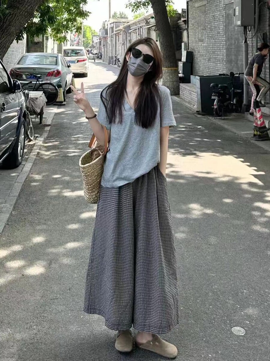 <曾小咸推荐> 4.10新品上新 T恤+格子阔腿裤休闲套装 日常189/套! 活动价99/套!单件T恤59!单件阔腿裤79!【预售款,预计3-15天发货】