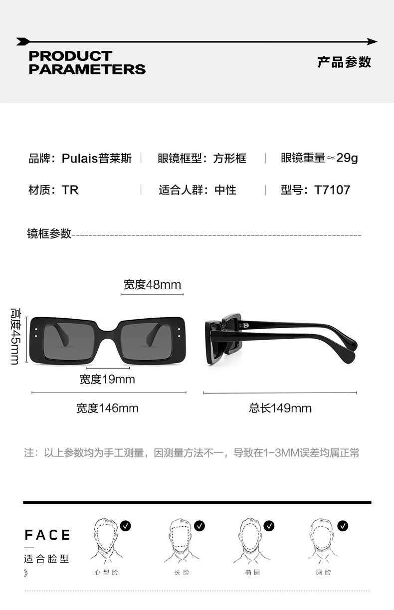普莱斯太阳镜7107 修颜不挑脸 偏光超黑 四色可选
