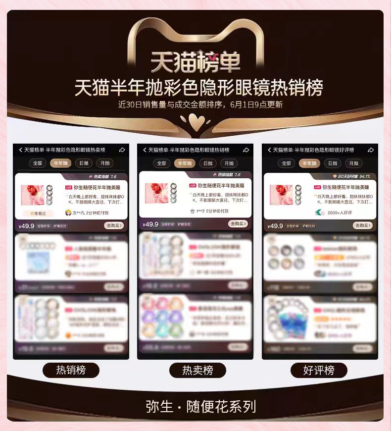 【买4送1 盛夏宠粉季】推荐贝母光晕!正品保证!弥生美瞳半年抛14.5大直径人鱼系列C