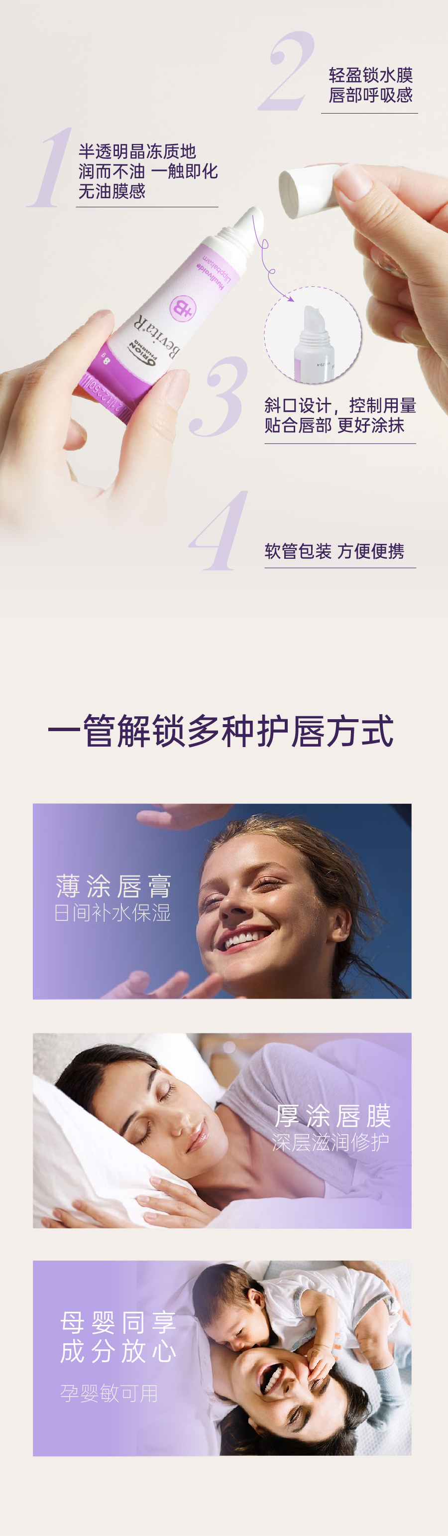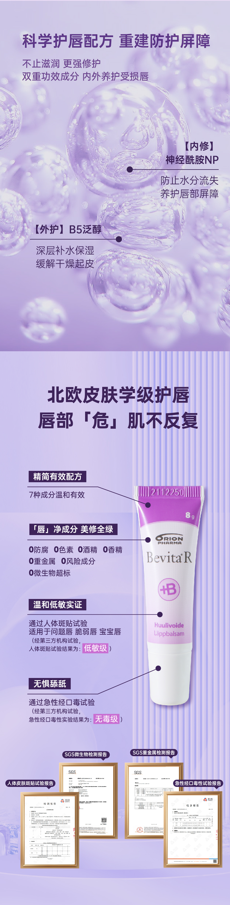 芬兰Orion Bevita国民品牌/持久滋润/温和护唇/富含VB5神经酰胺/便携卫生保湿修护润唇膏 8g/支