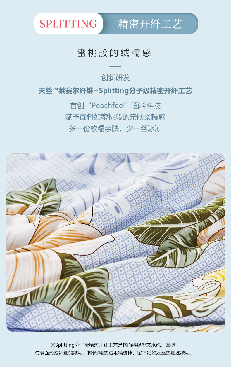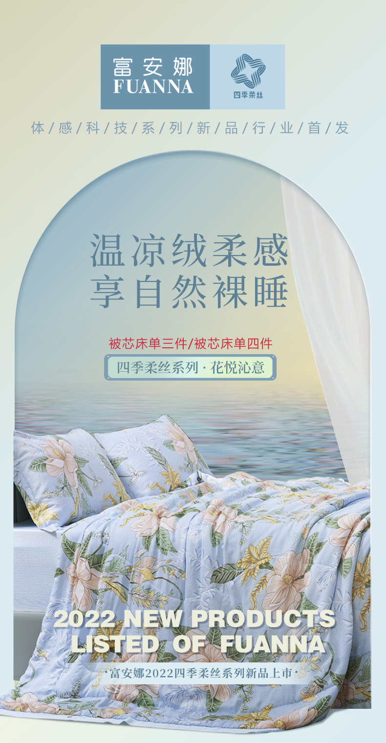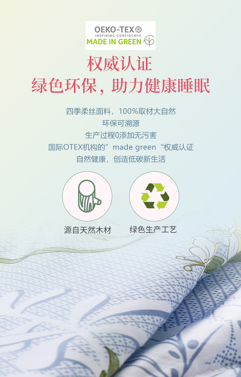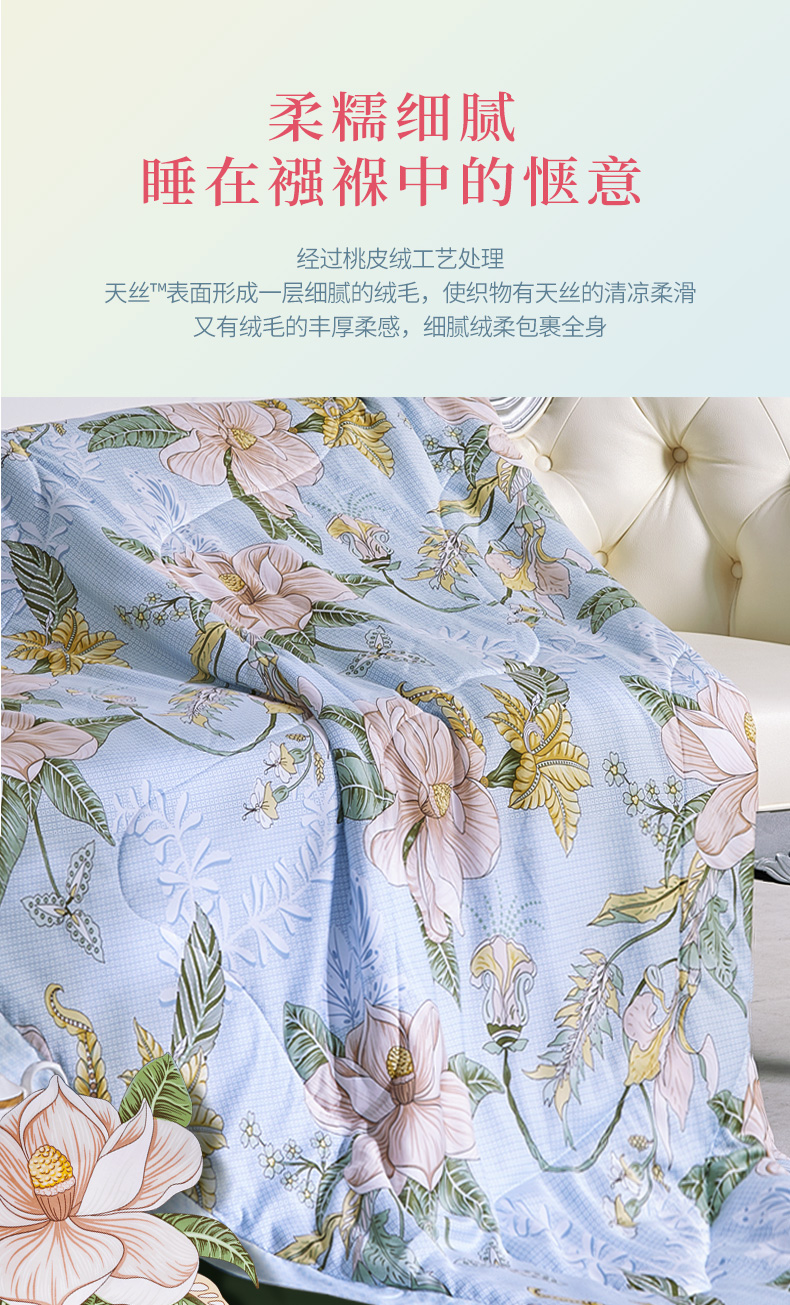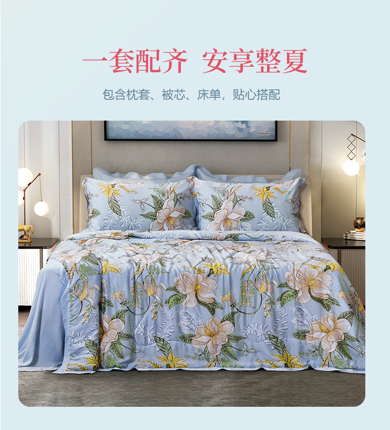 富安娜富安娜夏被蚕丝被 被芯床单四件/丝柔系列▪花悦沁意