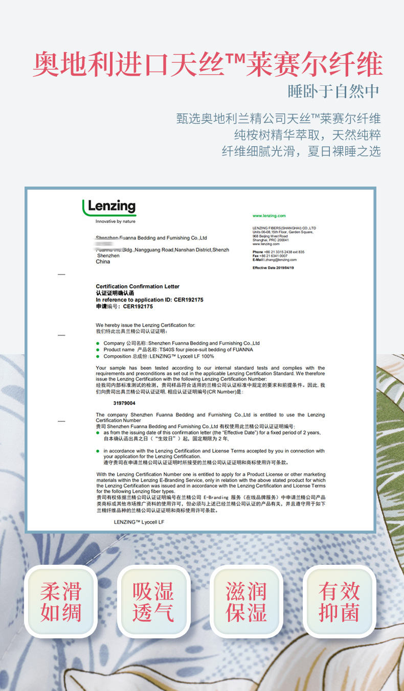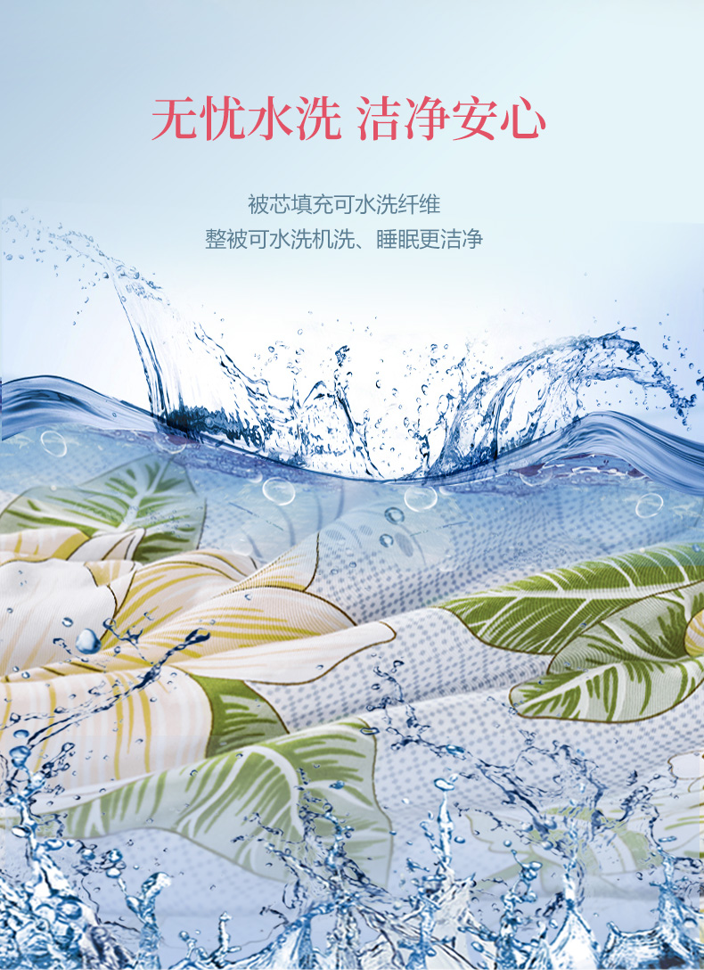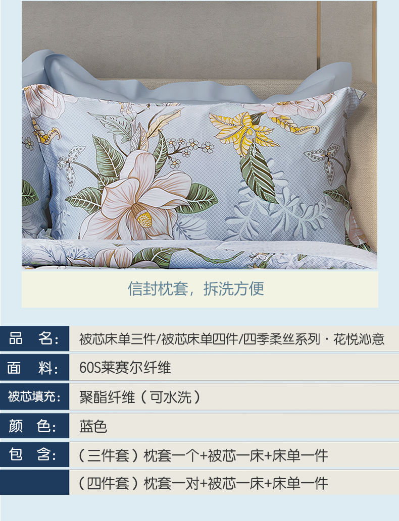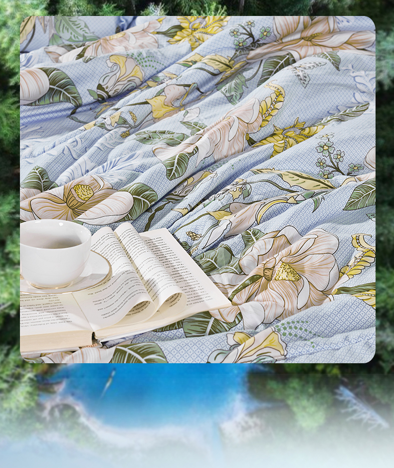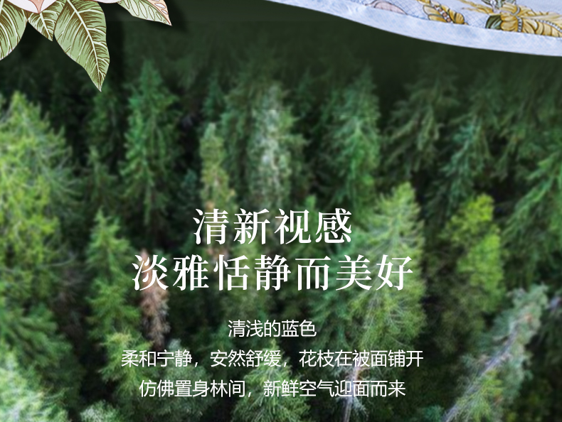 富安娜富安娜夏被蚕丝被 被芯床单四件/丝柔系列▪花悦沁意