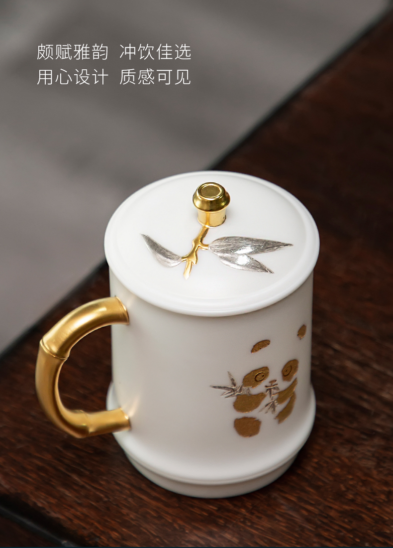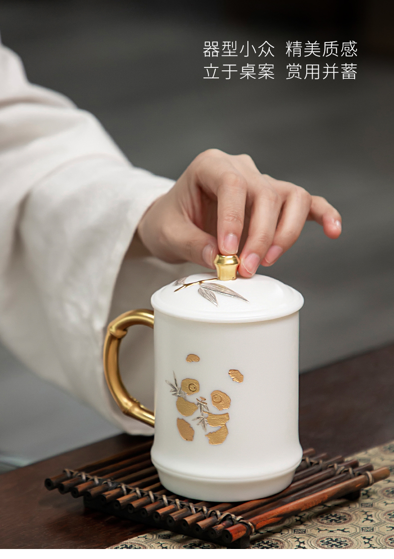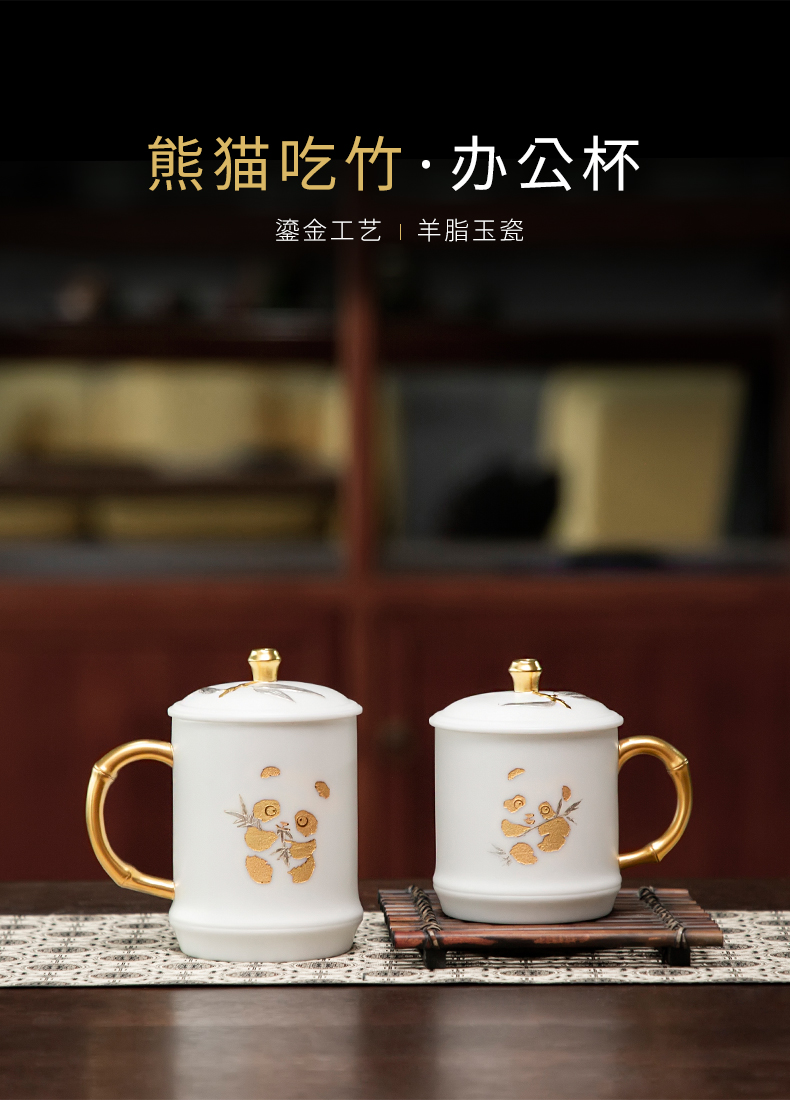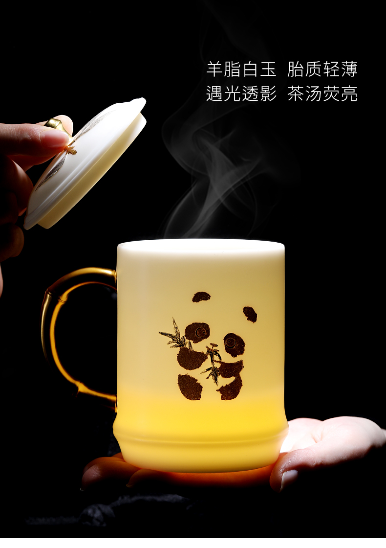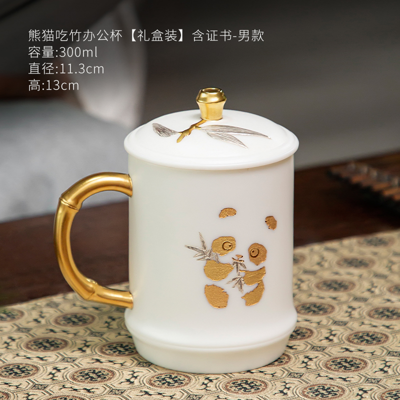 高档羊脂玉鎏金办公杯礼盒装林玉山手作