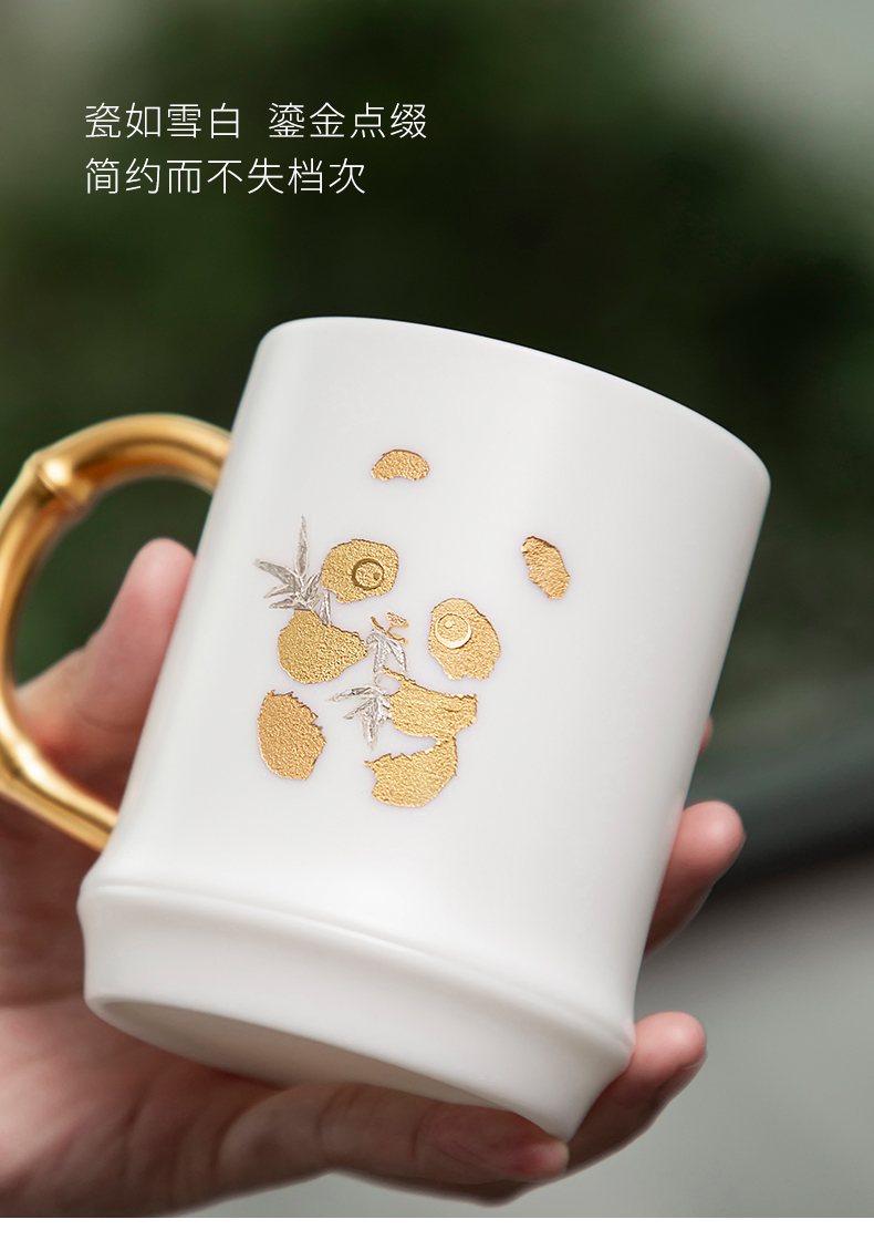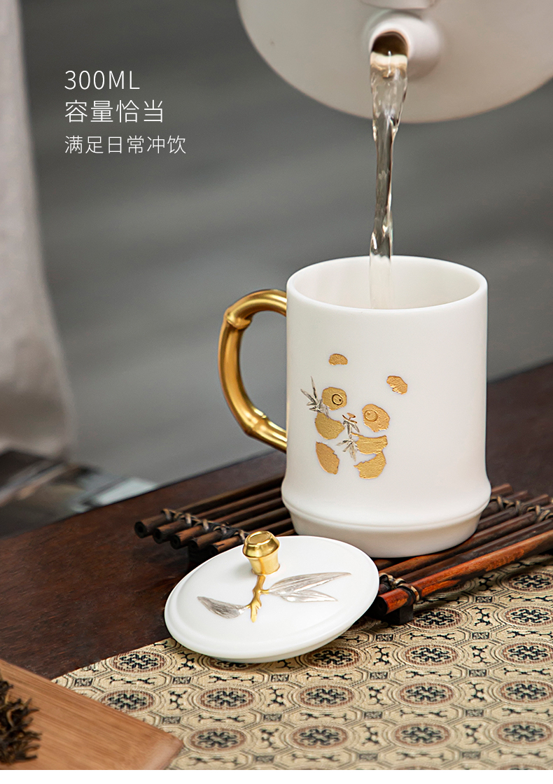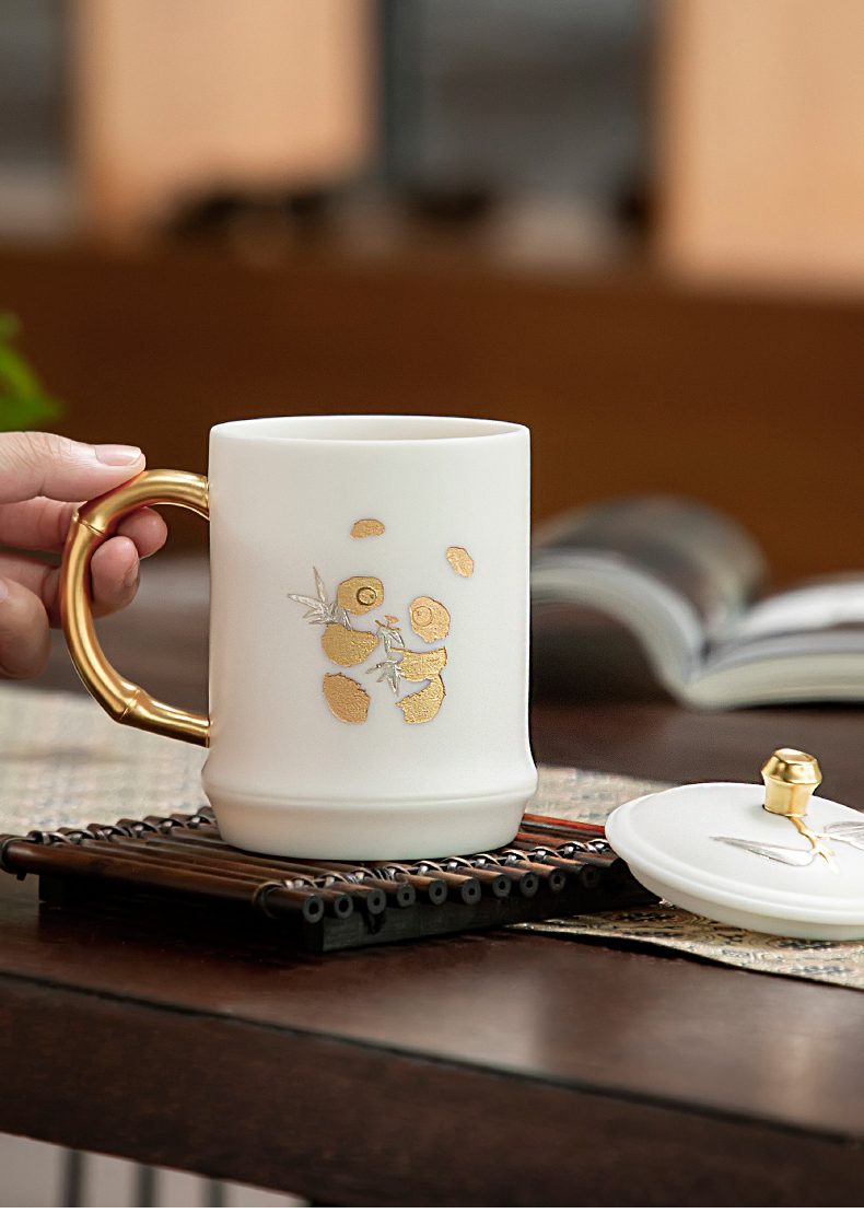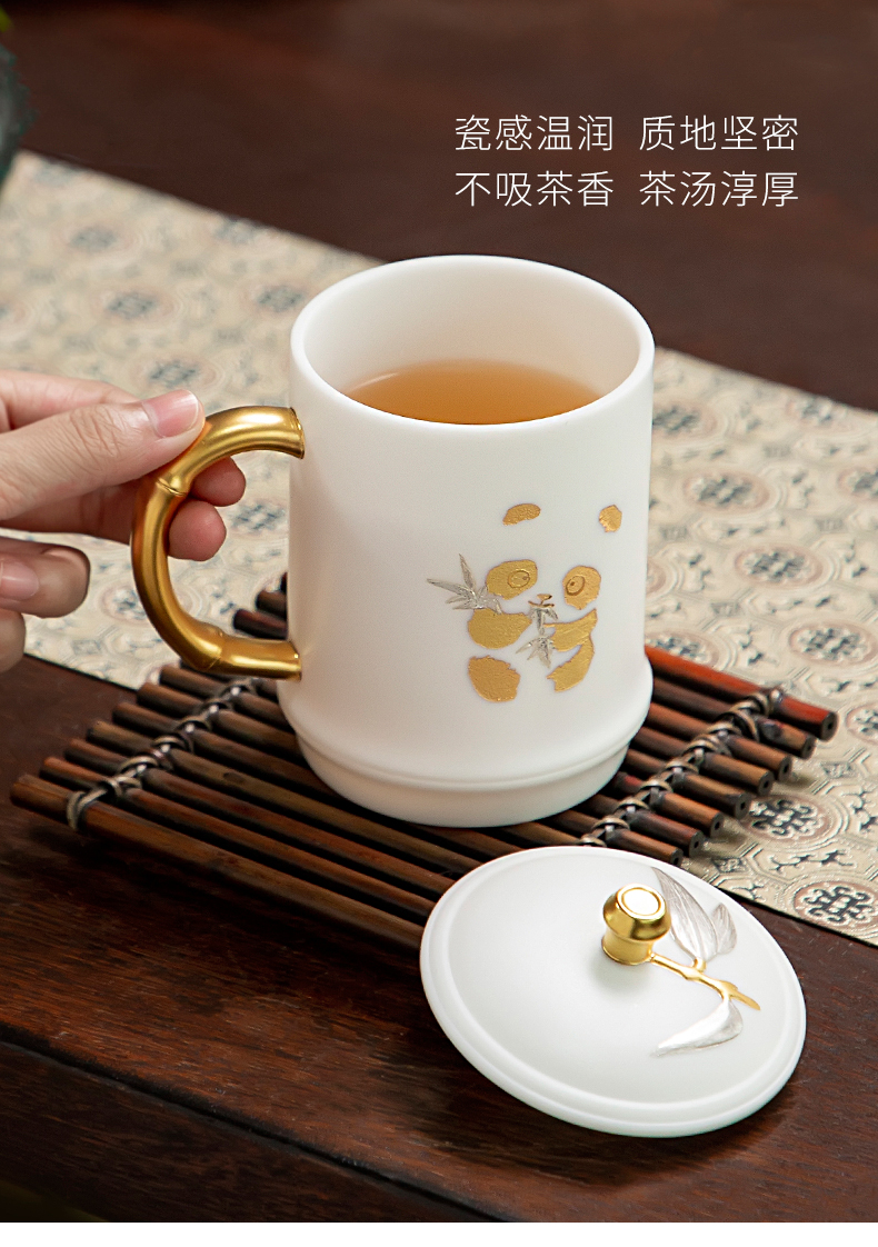 高档羊脂玉鎏金办公杯礼盒装林玉山手作