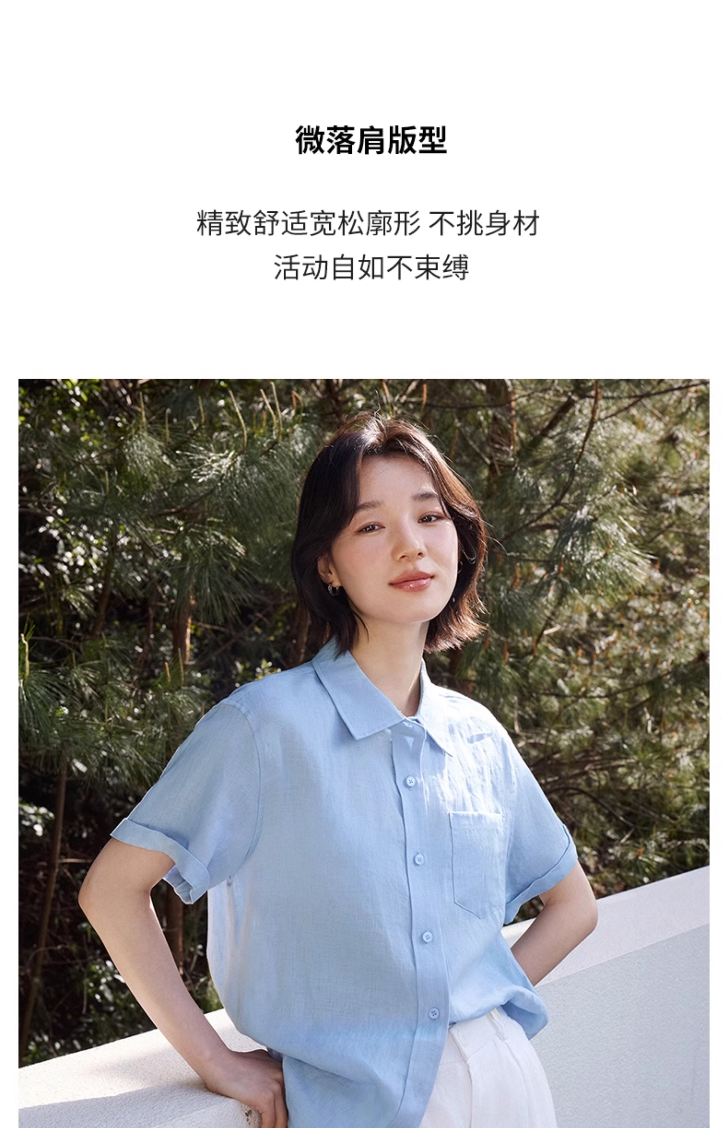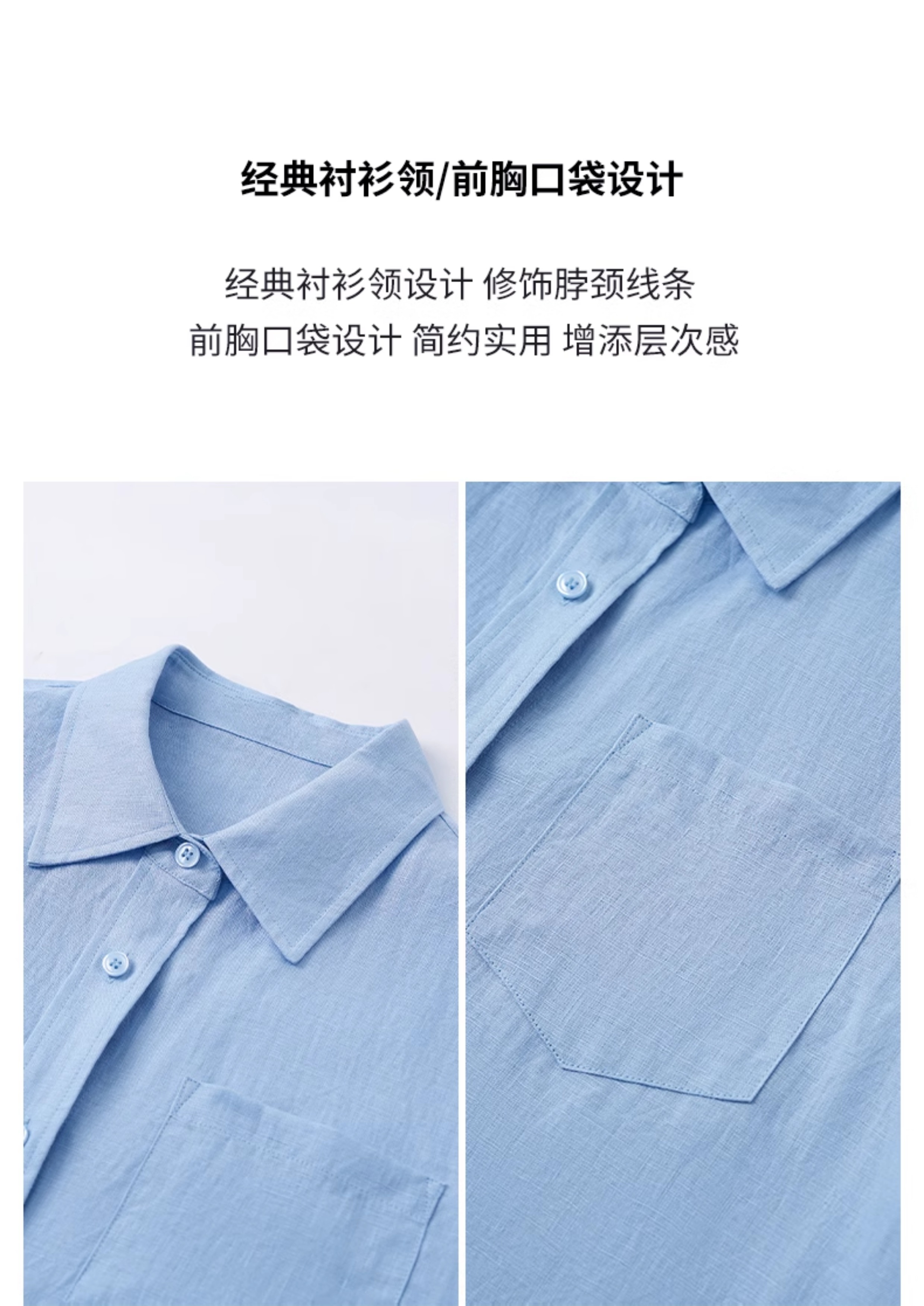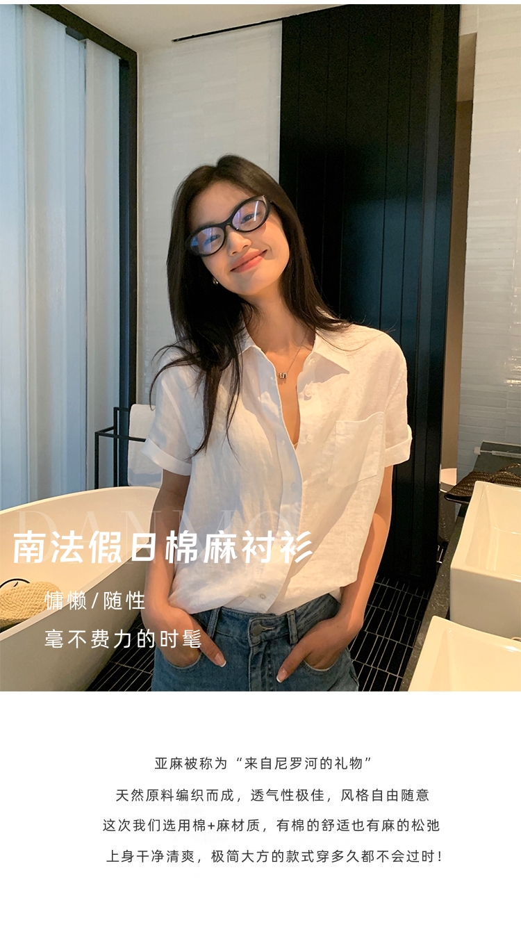 南法假日棉麻衬衫,麻混纺透气不闷,折边袖口、自由随意【G】