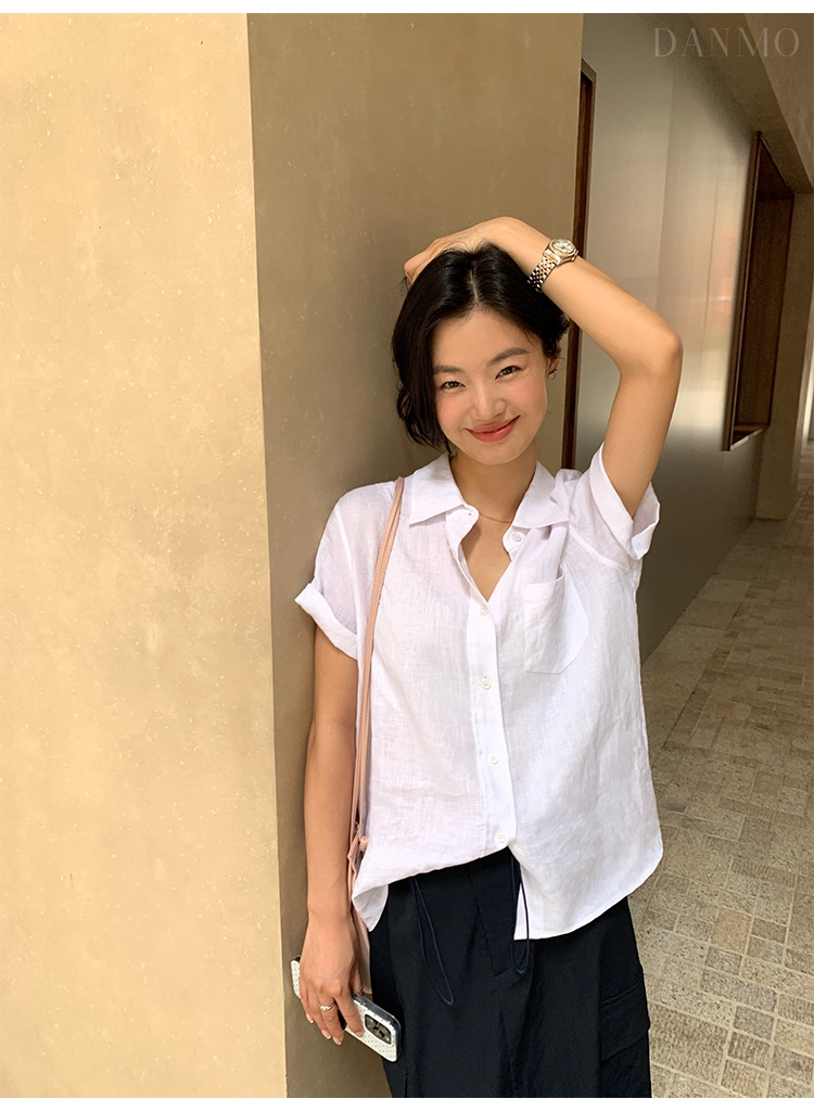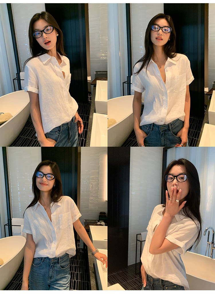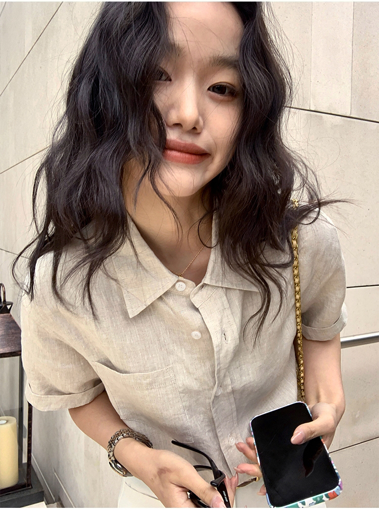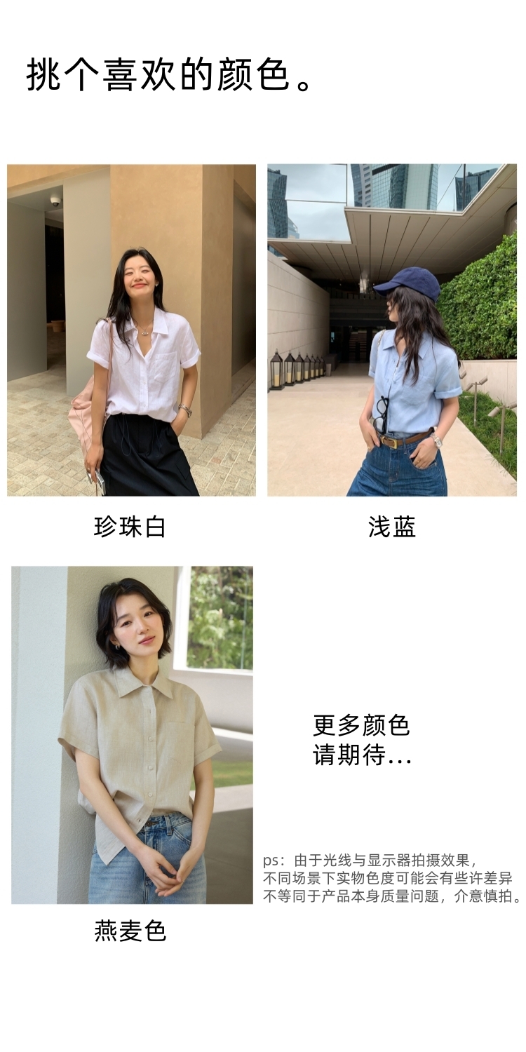南法假日棉麻衬衫,麻混纺透气不闷,折边袖口、自由随意【G】