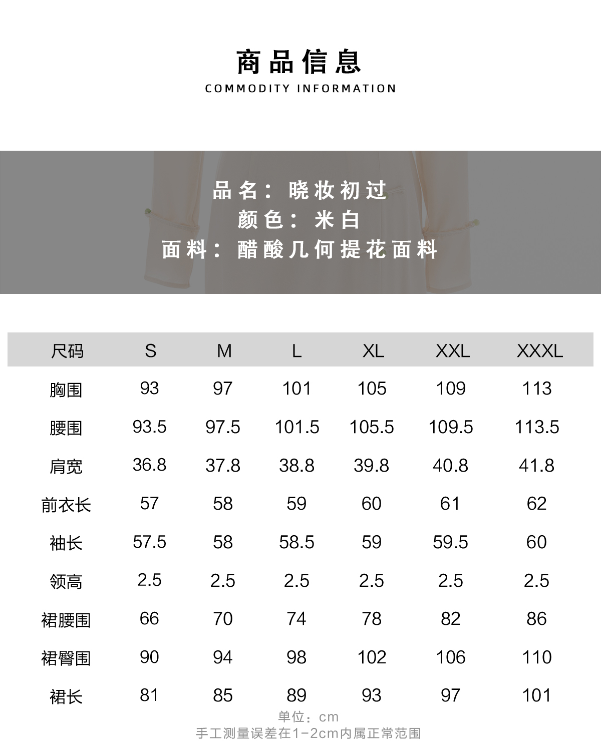 3、规格、尺码等;