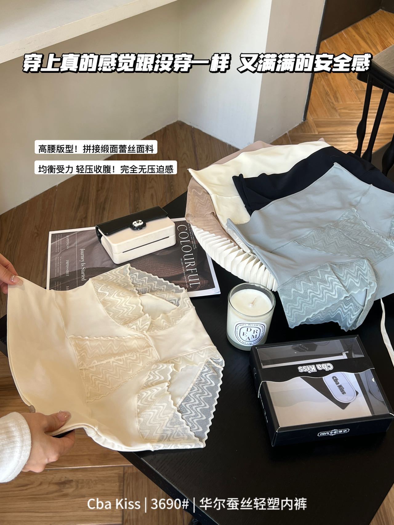新款华尔蚕丝轻塑内裤女高腰塑身收腹无痕舒适透气女士三角裤盒装
