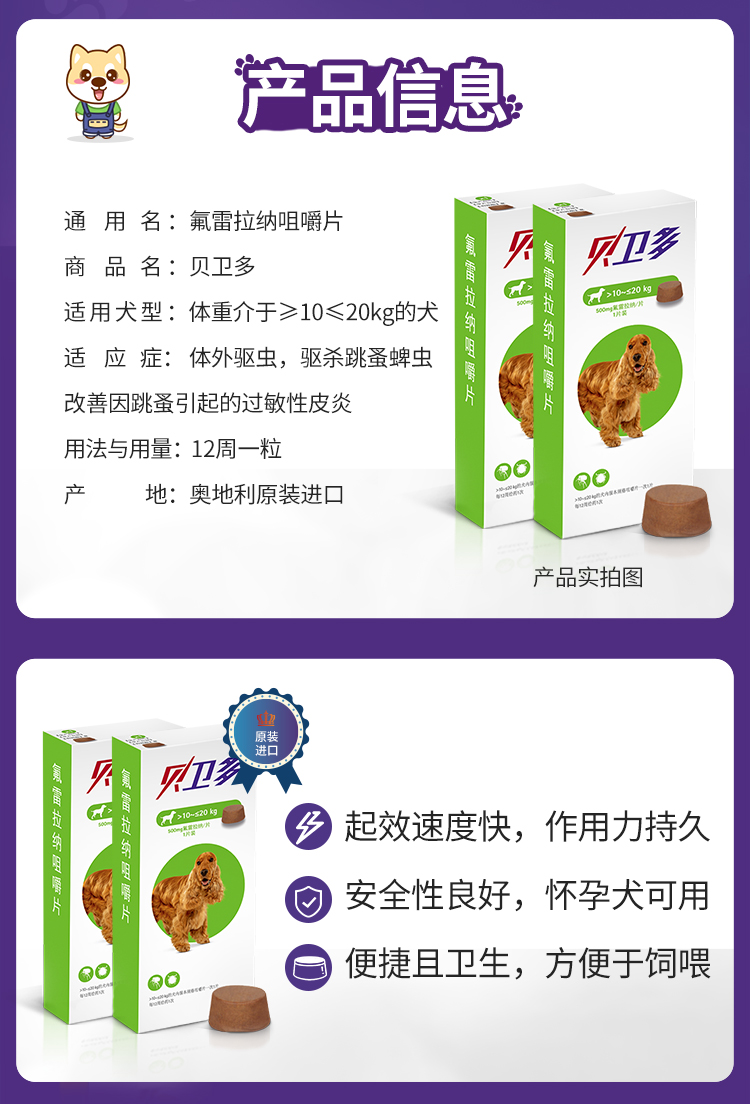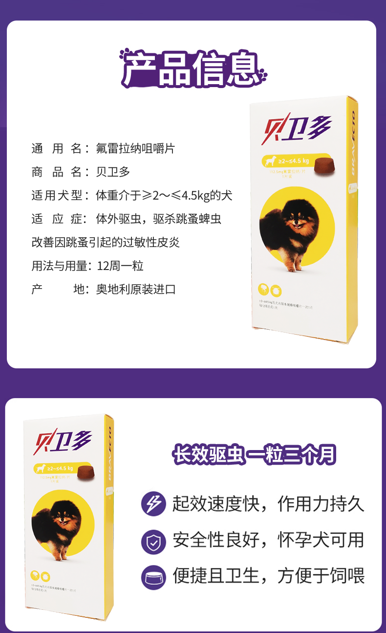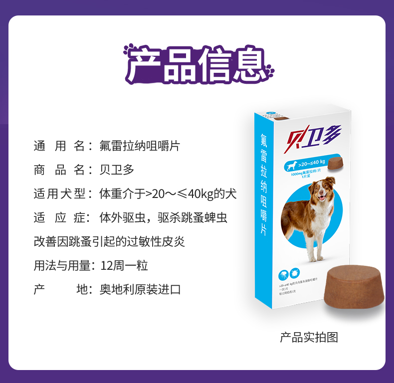 贝卫多宠物狗狗祛跳蚤蜱虫体外固体口服驱虫