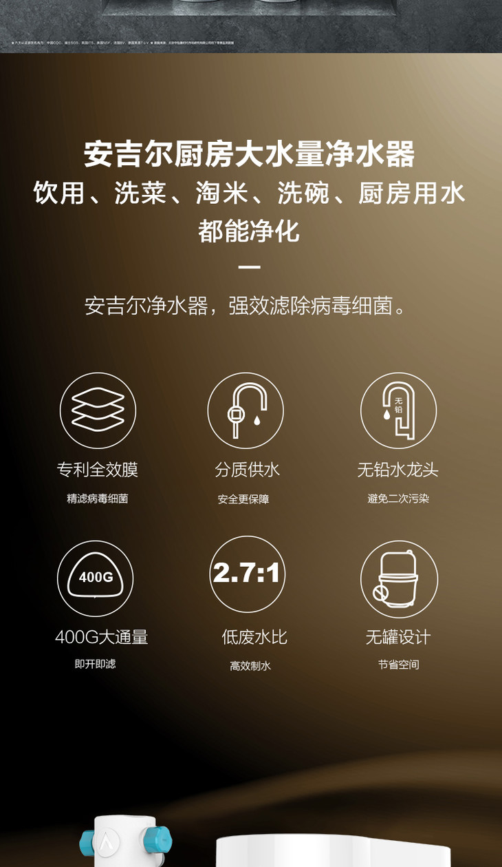 安吉尔 A7lite大水量净水器反渗透过滤直饮 J2908-ROC60