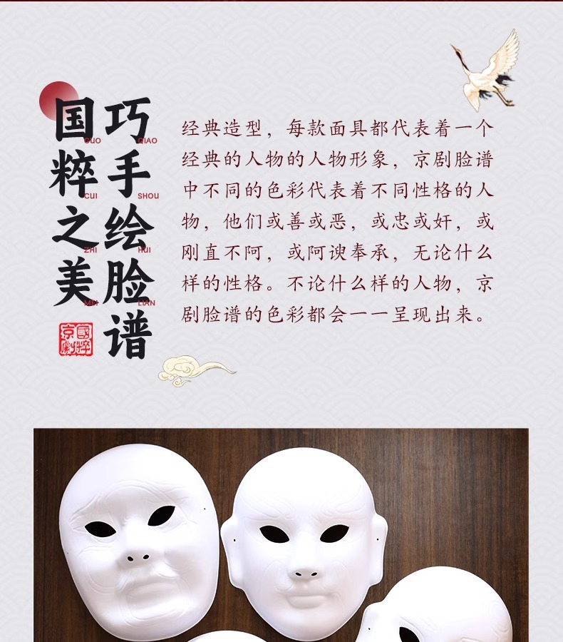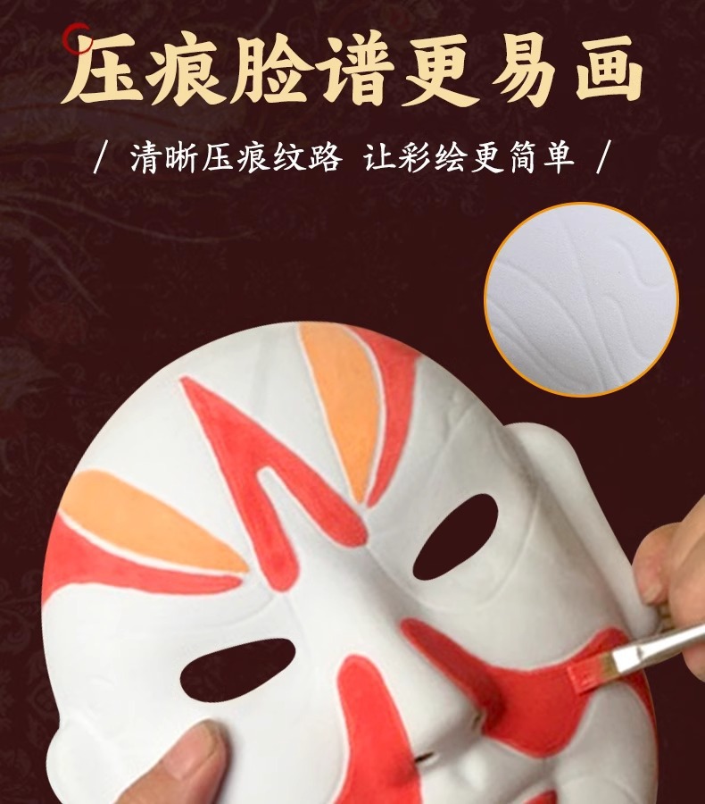【DIY材料包❗️京剧脸谱面具】脸谱手绘邀您玩转国风,压痕脸谱更易画,表面植绒工艺,韧性好不易坏,diy材料包国潮风涂色勾线手绘川剧戏曲舞台装饰QQ