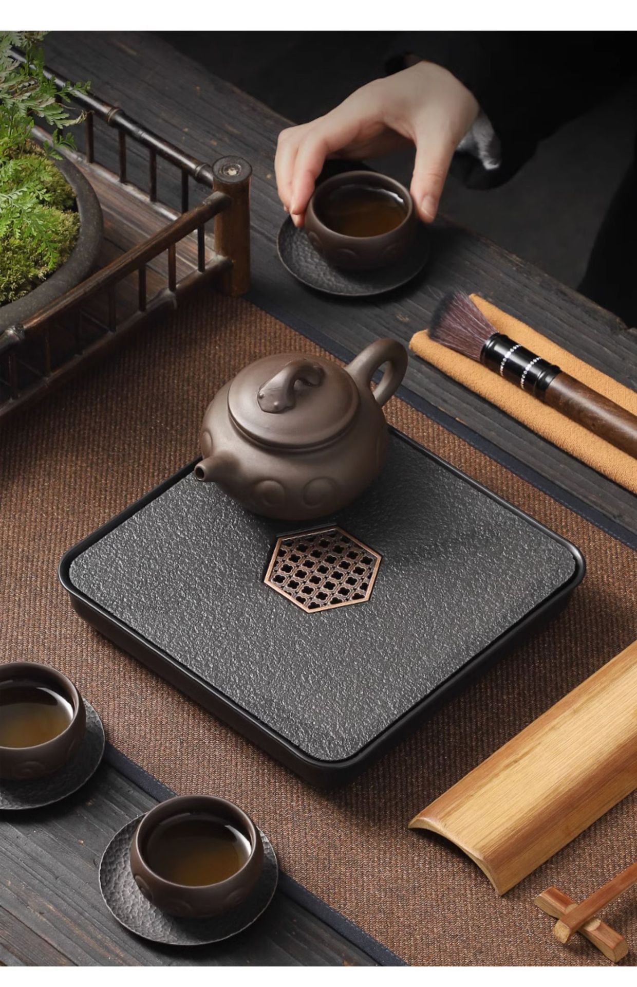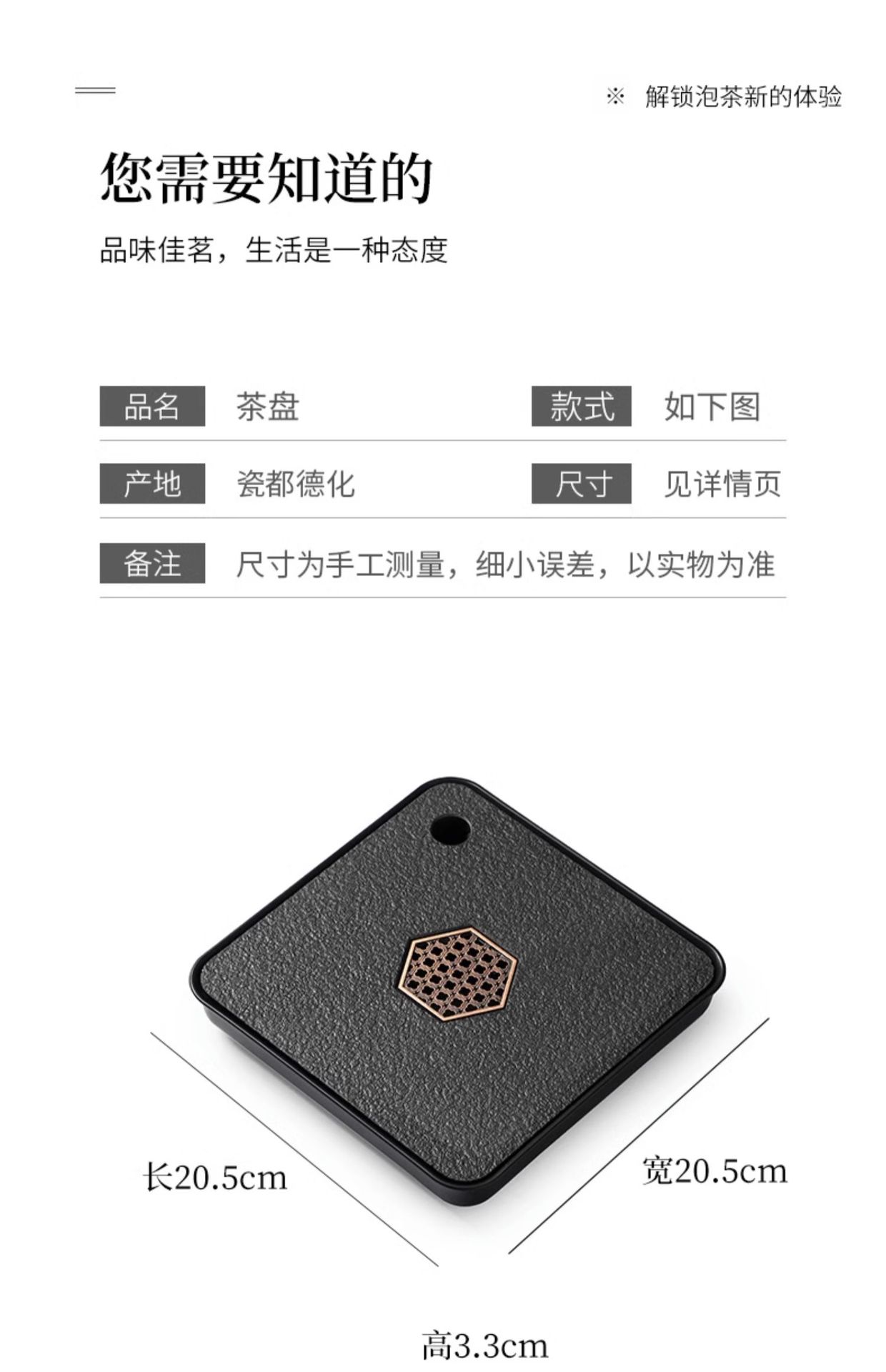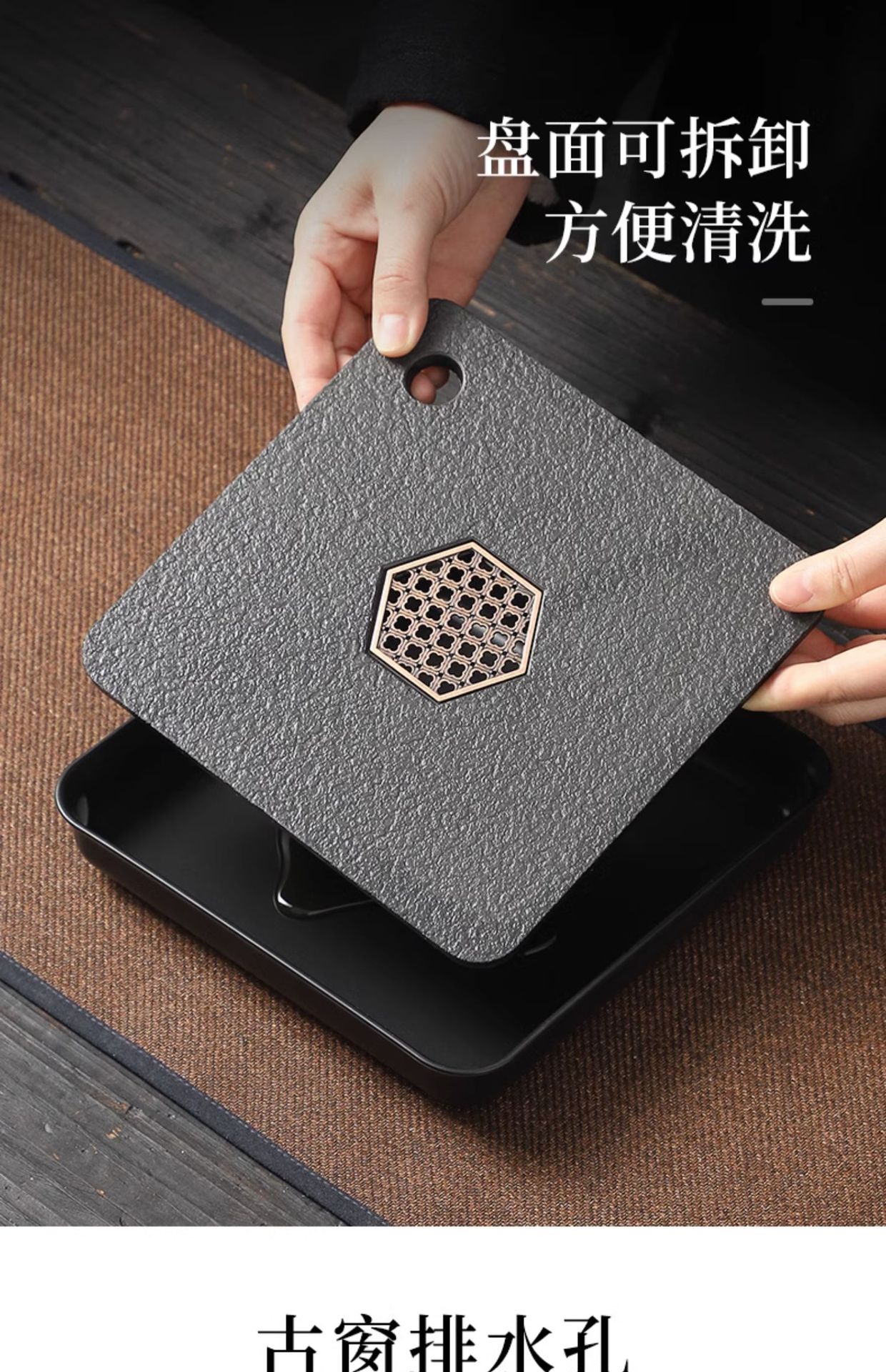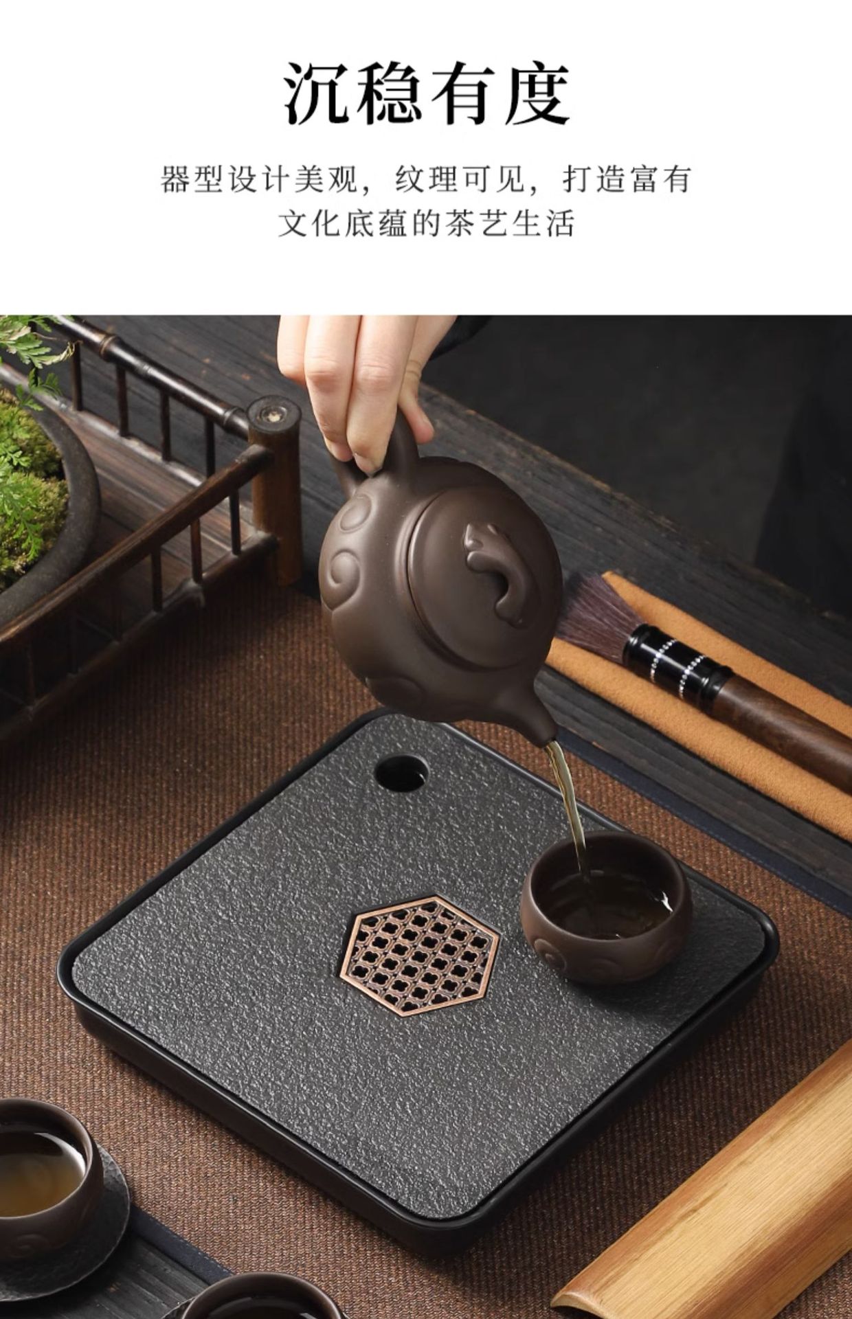 「中式仿乌金瓷石茶盘」茶具小型四方茶台储水排水式干泡台家用茶盘餐饮用具