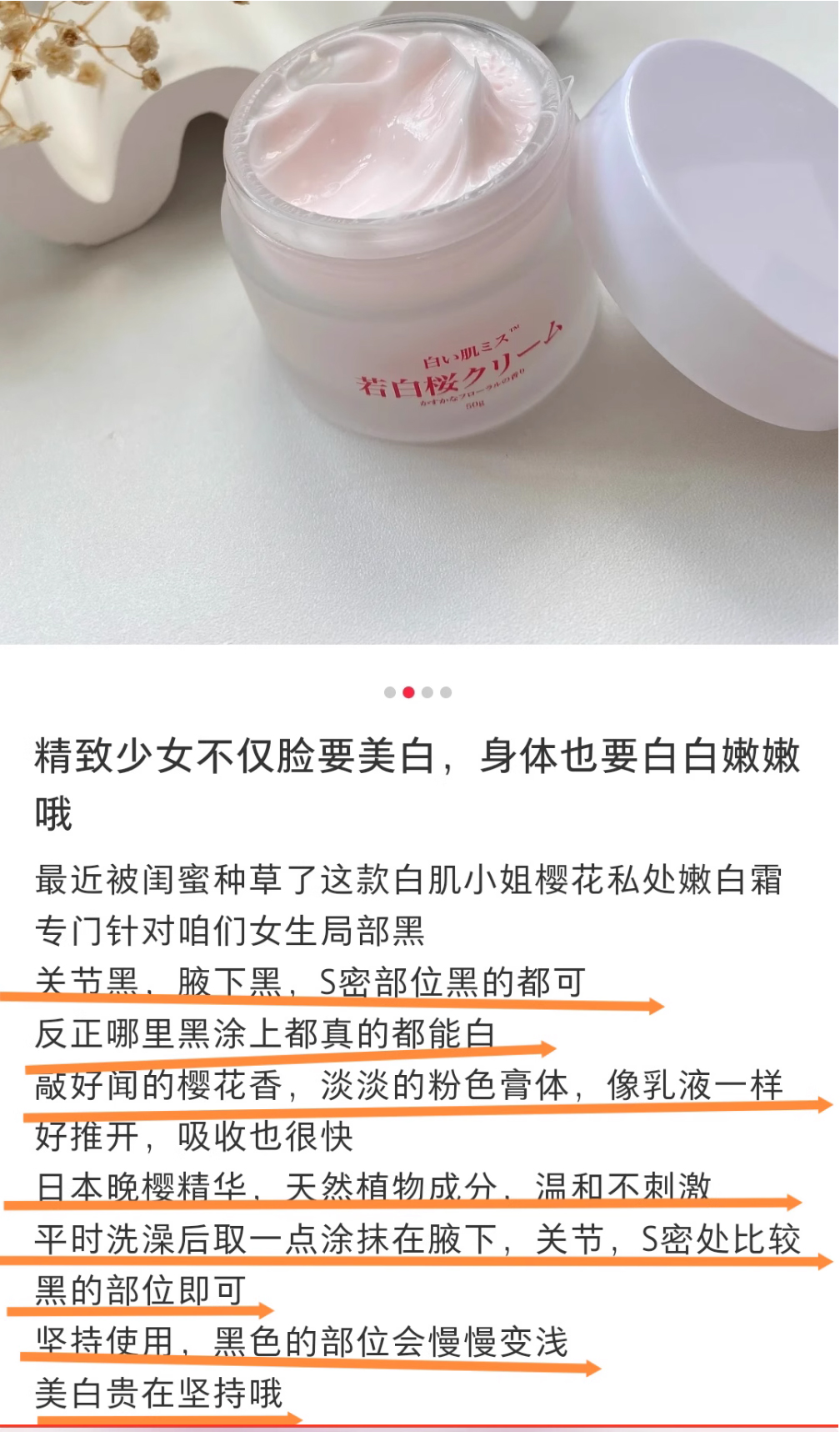 【品名】日本进口白肌小姐樱花私の处嫩白霜去黑色素粉嫩霜膏50g