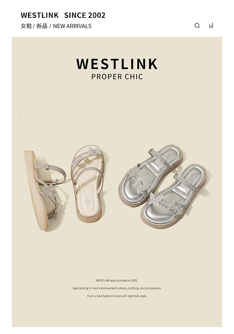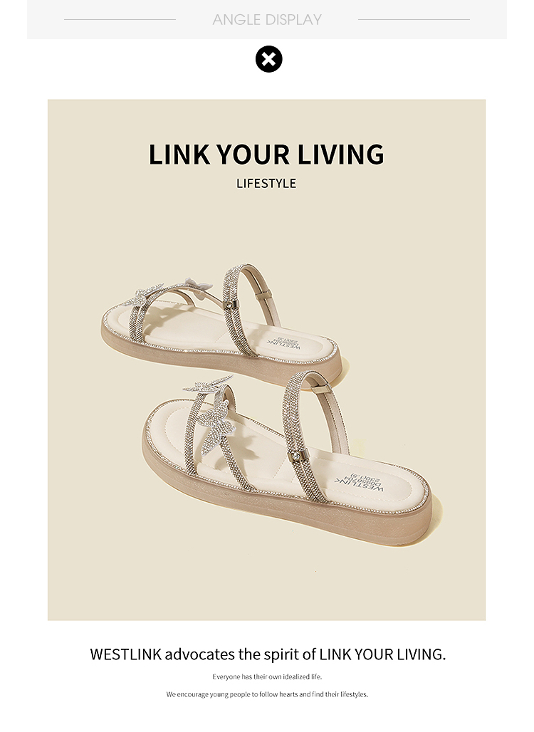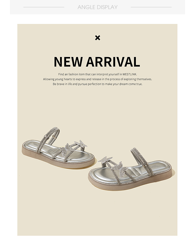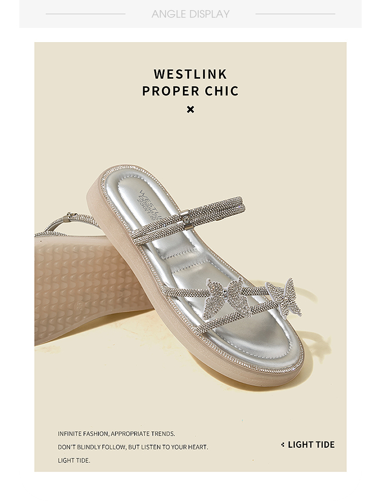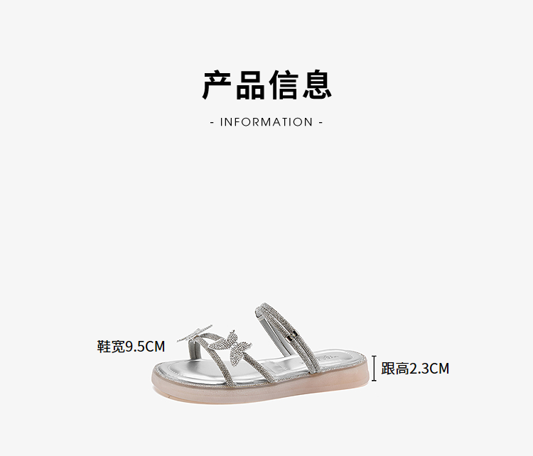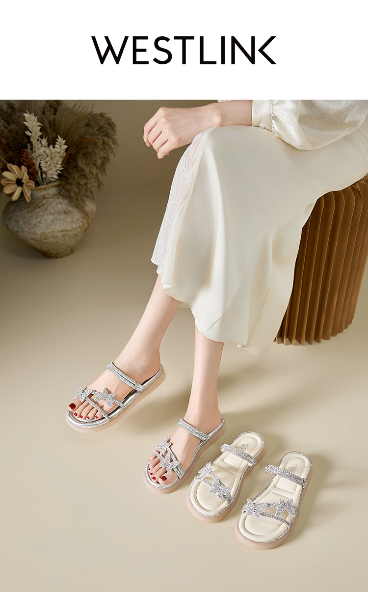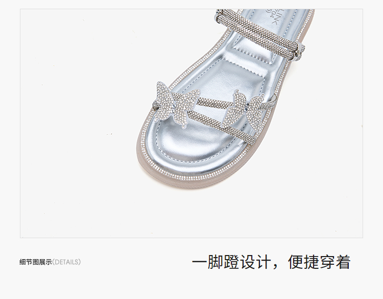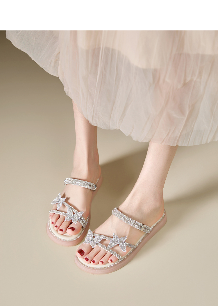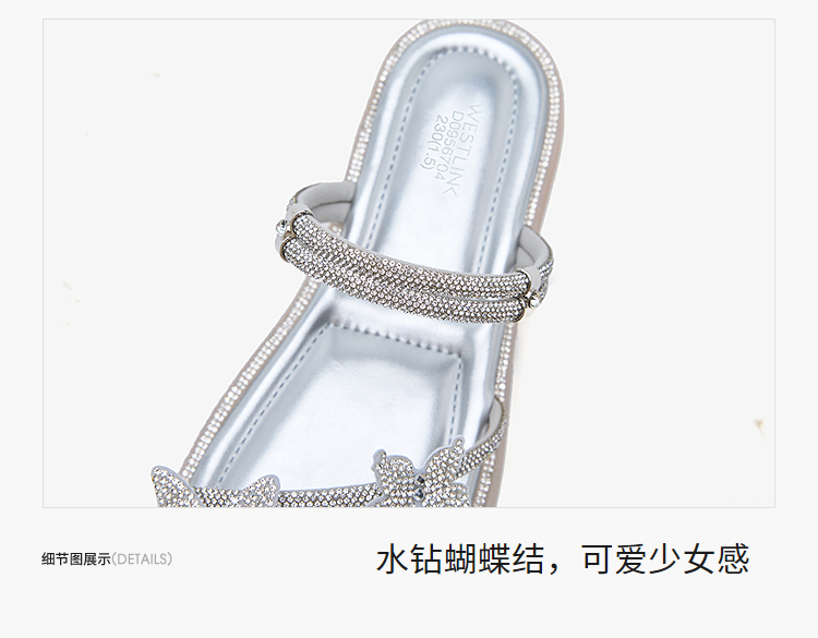 西遇夏季外穿绝美凉拖鞋女新款法式蝴蝶水钻配裙子凉鞋一字拖D0956704
