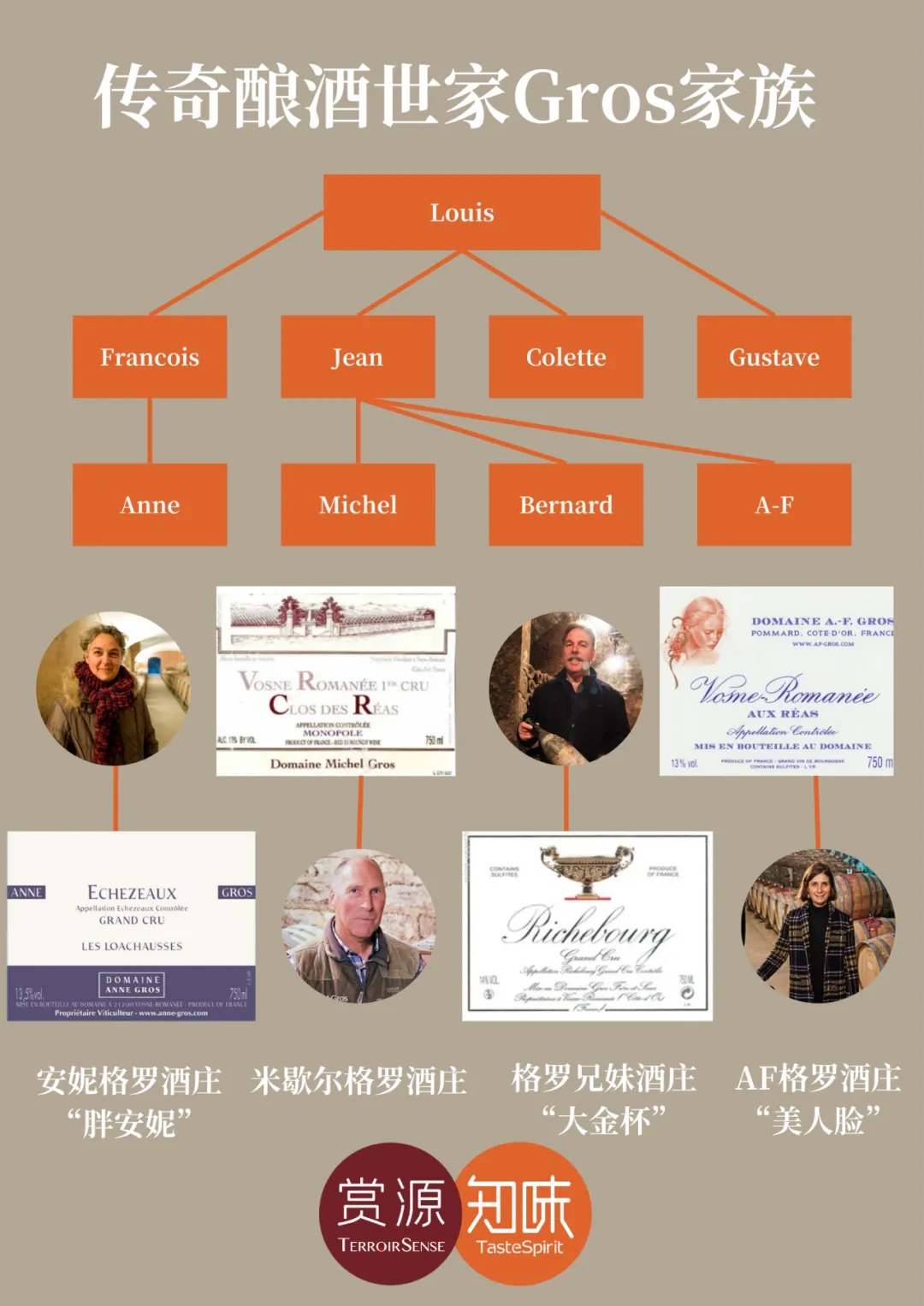格罗家族(Gros),勃艮第赫赫有名的酿酒世家。目前家族有四个分支,其中因为酒标鲜明的华丽金杯而被酒友惯称“大金杯”的格罗兄妹 Gros Frère et Sœur(以下称大金杯),是地位、人气、价格、收藏价值都十分突出的一个分支。