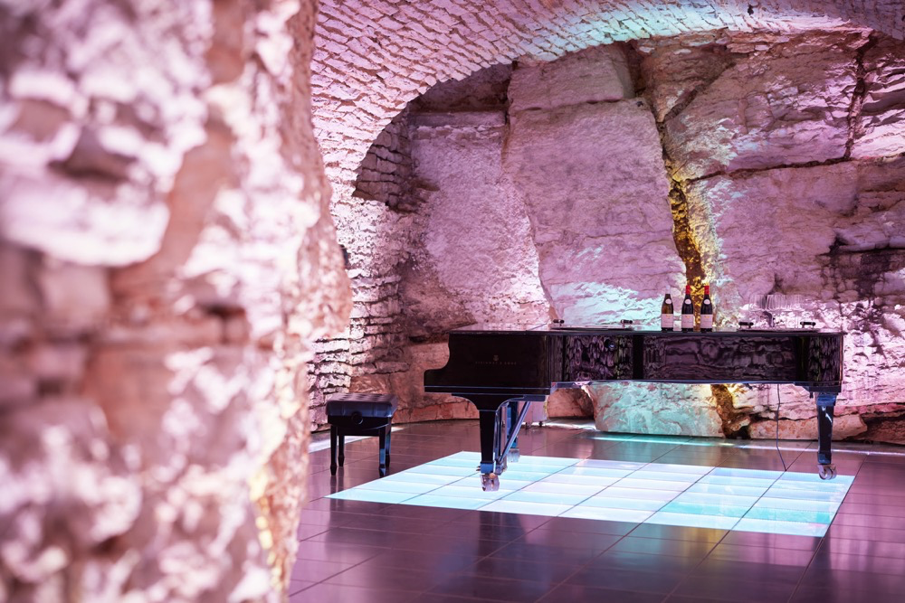 大金杯近几年翻新的19世纪建成的地下酒窖,保留了岩壁以展示Vosne Romanee村的地质结构;酒窖内摆放了一架三角钢琴作为品鉴桌,体验不可谓不独特。