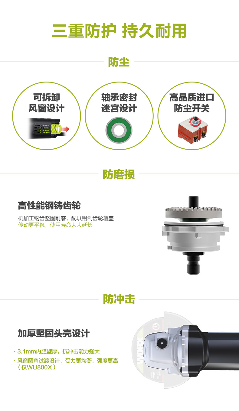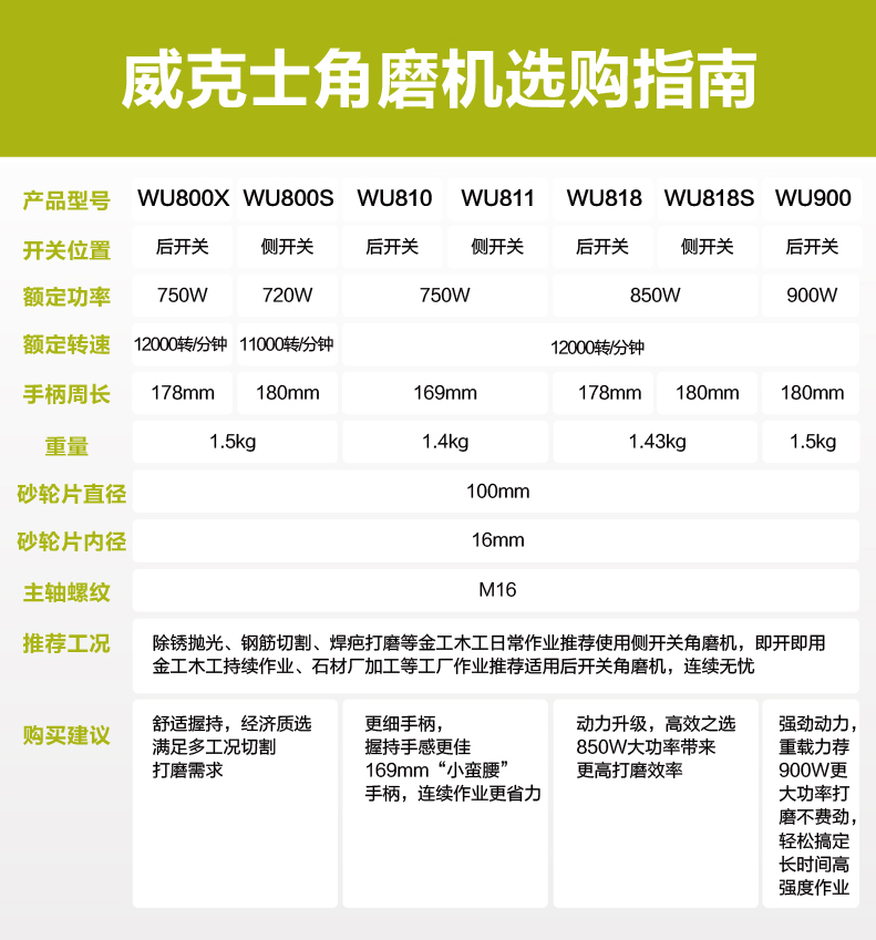 威克士工业级220V万用角磨机WU800X多功能电动抛光打磨切割磨光机WU818