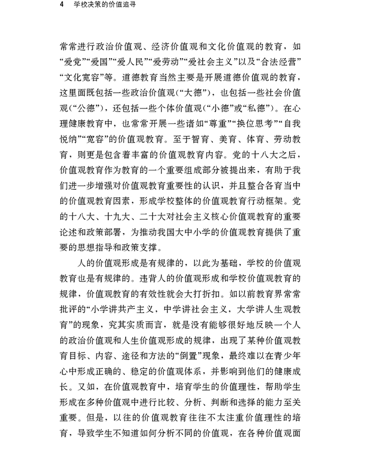 学校决策是一种价值活动,是价值判断、价值选择与价值平衡的过程。本书作为“十四五”国家重点图书出版规划项目“当代中国价值教育研究丛书”之一,主要研究当下中小学学校决策的价值困境与价值取向。本书的目的在于唤醒学校管理者的价值自觉与价值自主,给学校决策者以价值指引,具有理论与实践的双重意义。