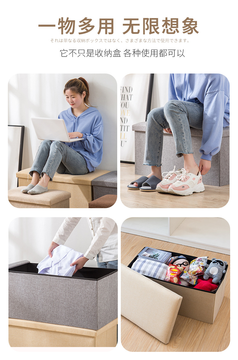 【多功能棉麻收纳凳】布艺收纳换鞋凳 棉麻储物凳家居收纳箱