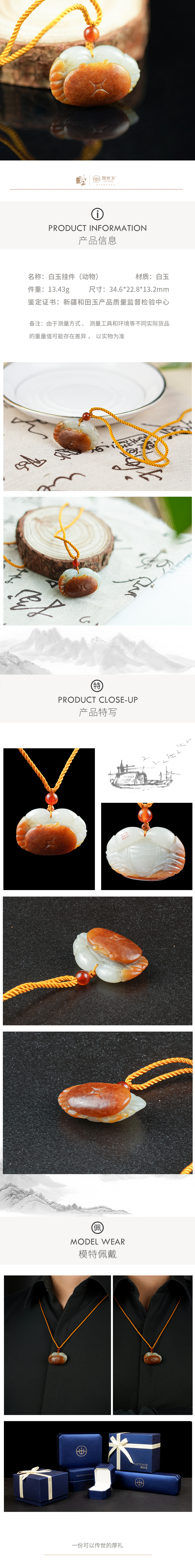 新疆国玉盟世玉和田玉白玉挂件螃蟹(八方来财)【带证书·顺丰物流】