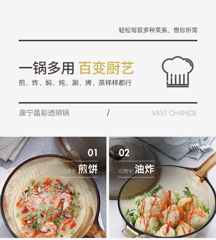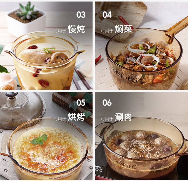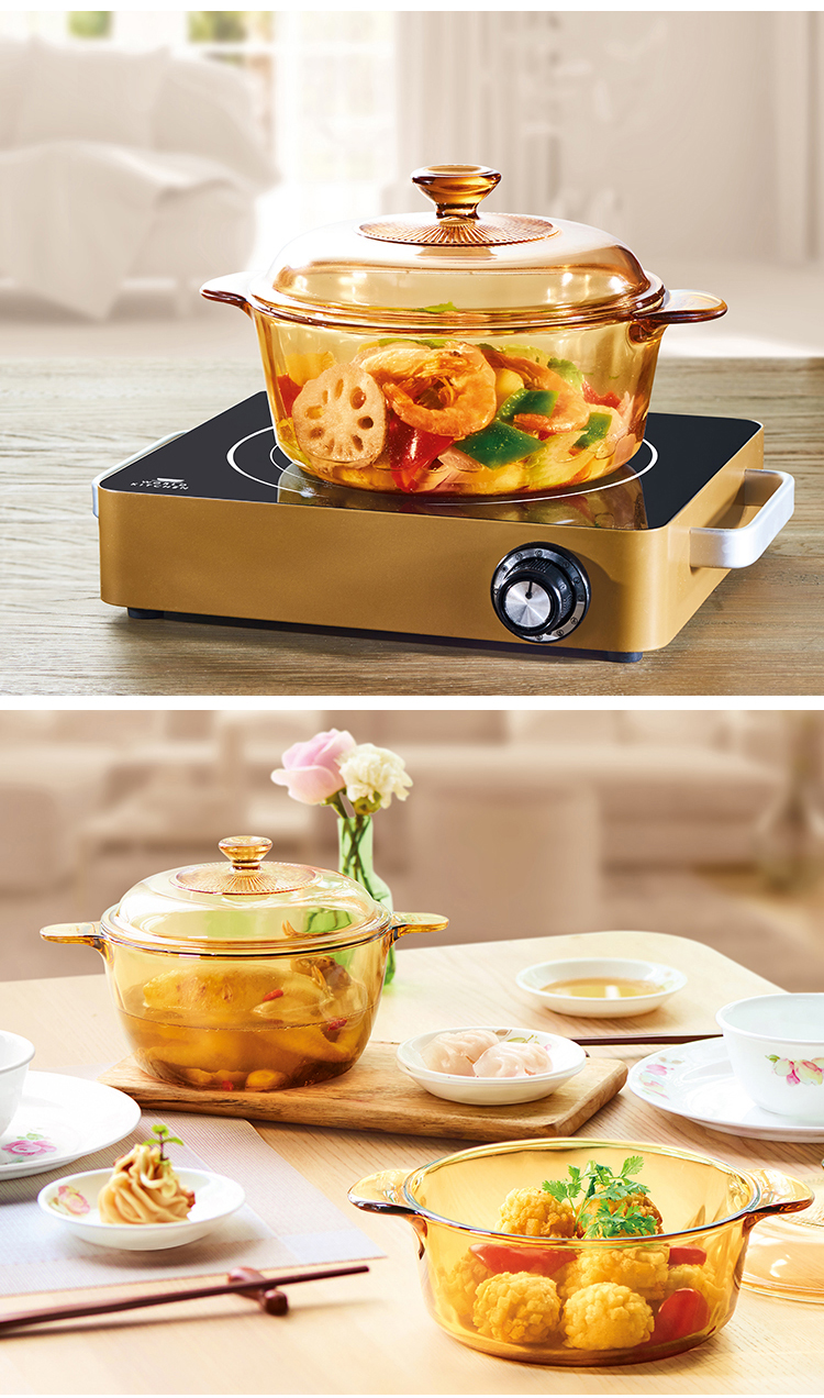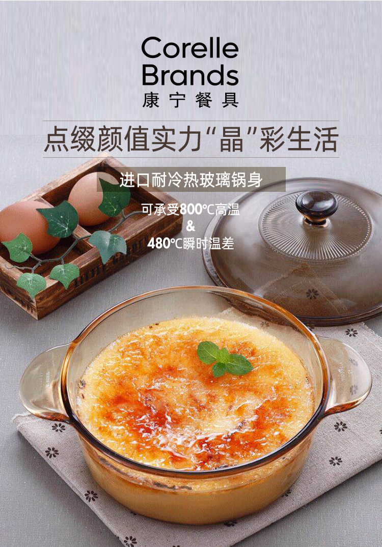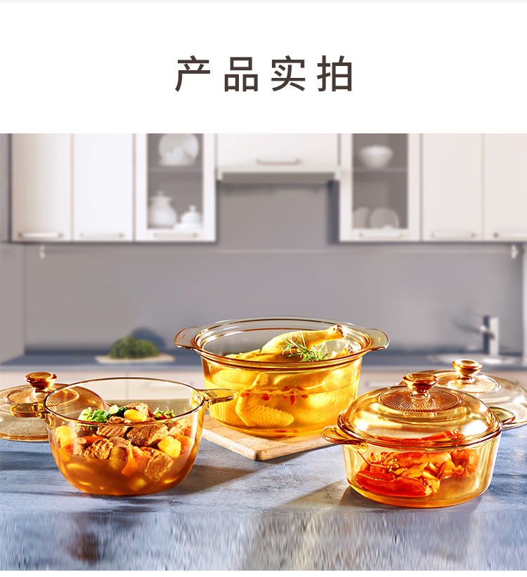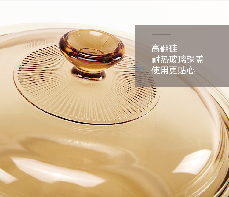 康宁锅晶彩透明玻璃锅明火直烧耐高温燃气砂锅家用1.25L