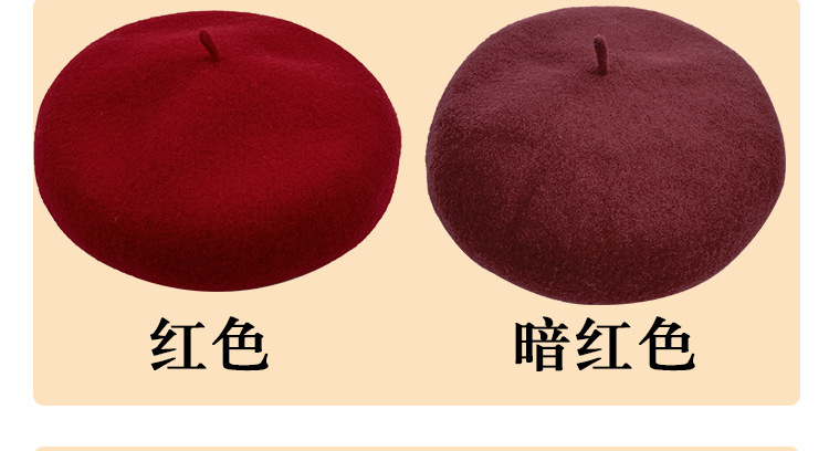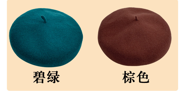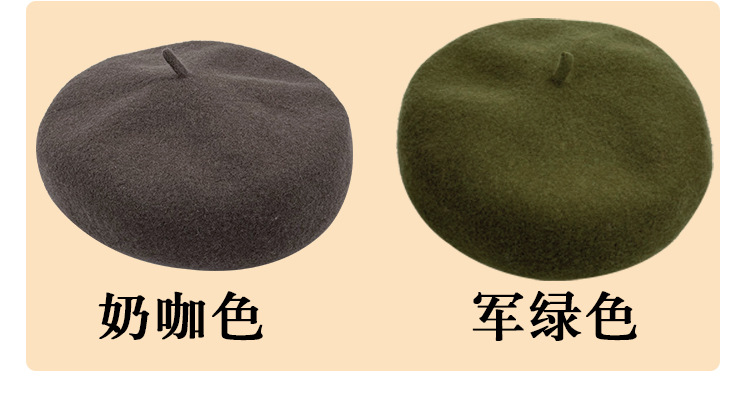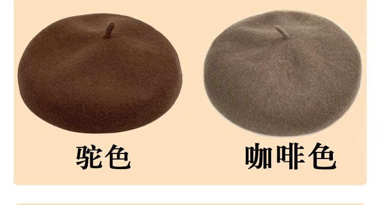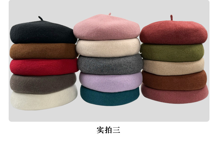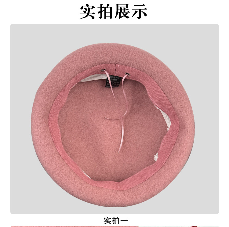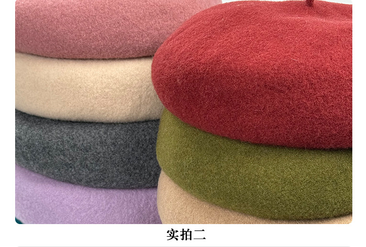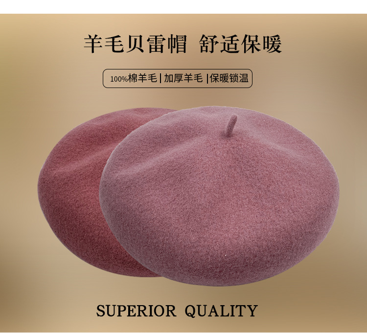 100%羊毛贝雷帽女士韩系复古显脸小纯色甜美百搭画家百分百羊毛帽2025新款小红书爆款