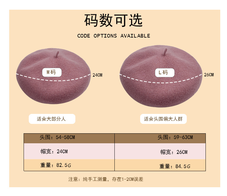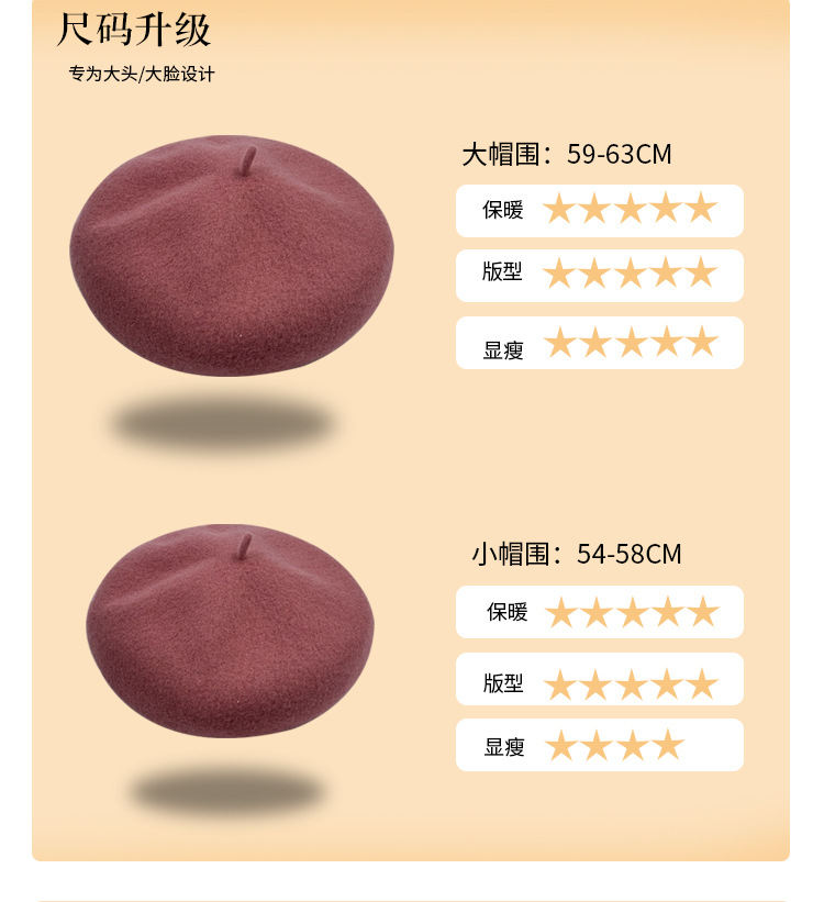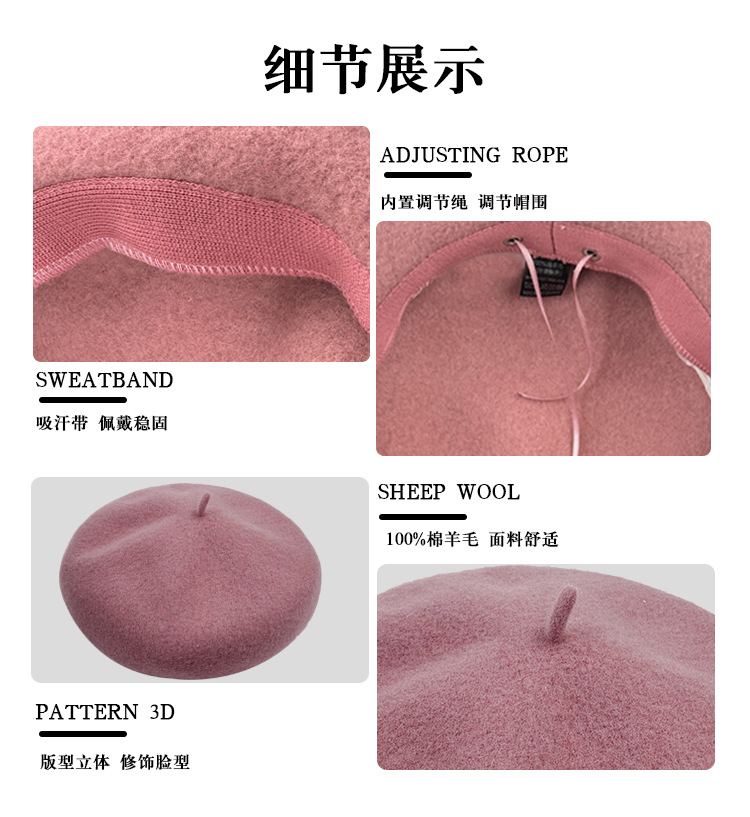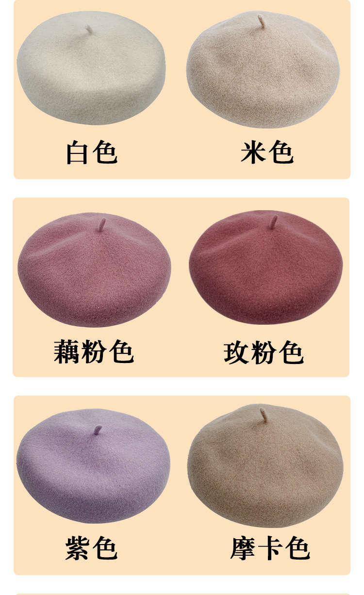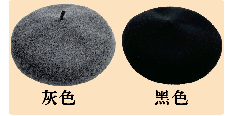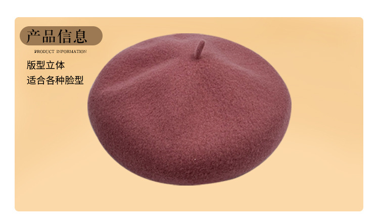 100%羊毛贝雷帽女士韩系复古显脸小纯色甜美百搭画家百分百羊毛帽2025新款小红书爆款