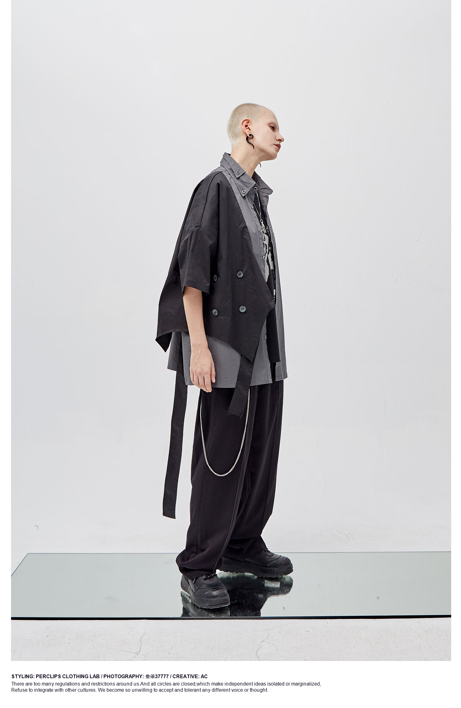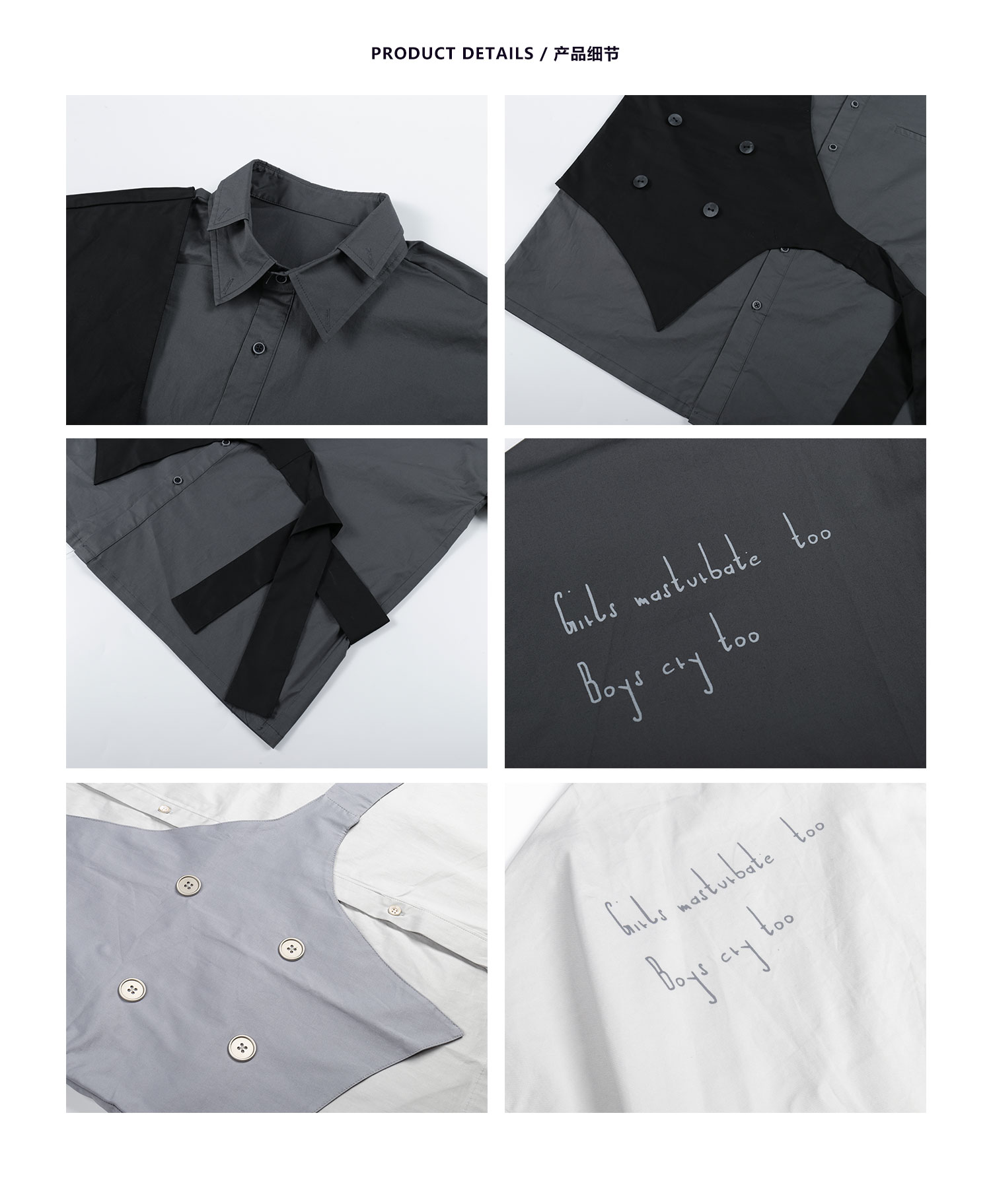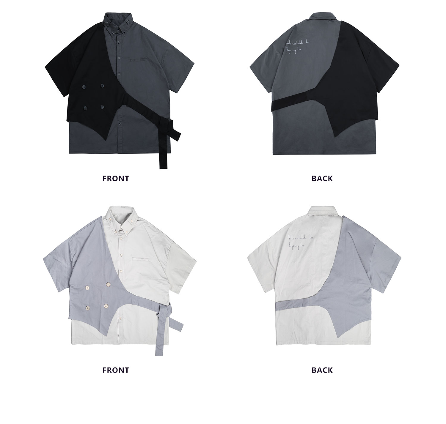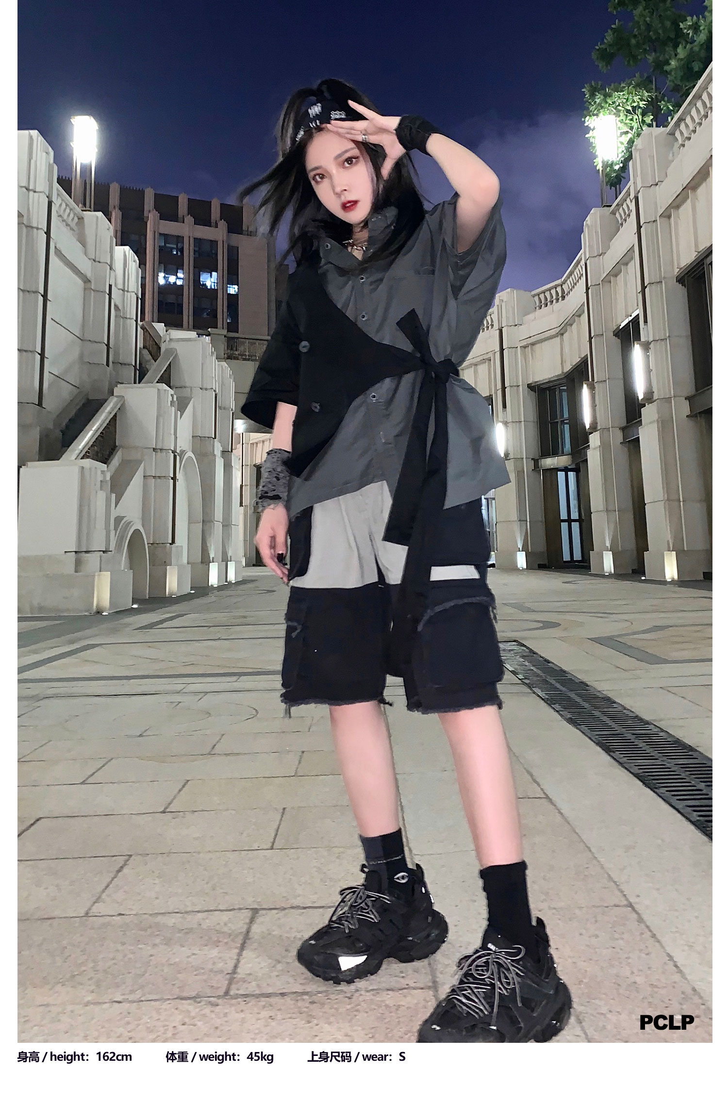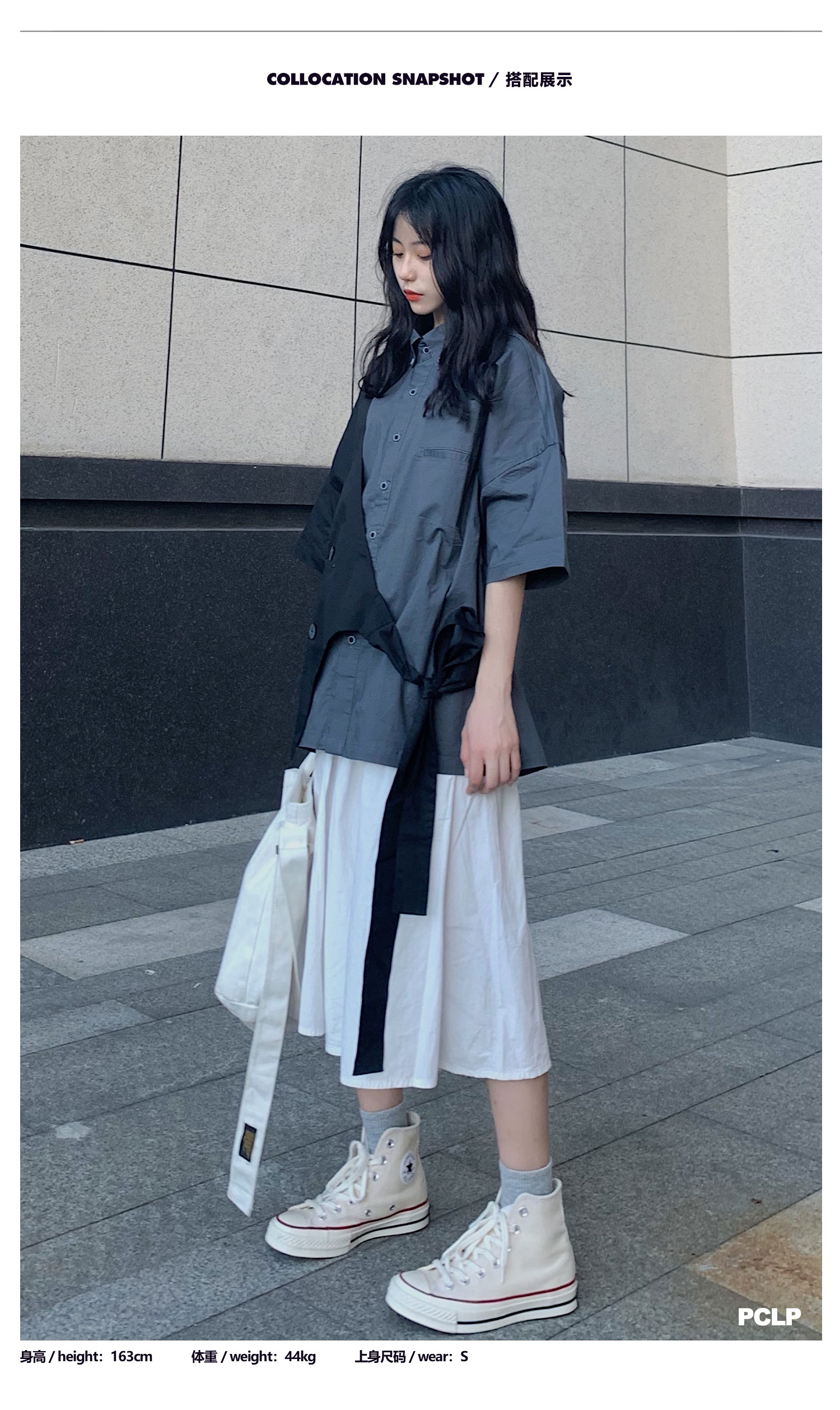 PCLP(PERCLIPS)假两件短袖衬衫国潮牌夏季工装日系港风半袖衬衣男