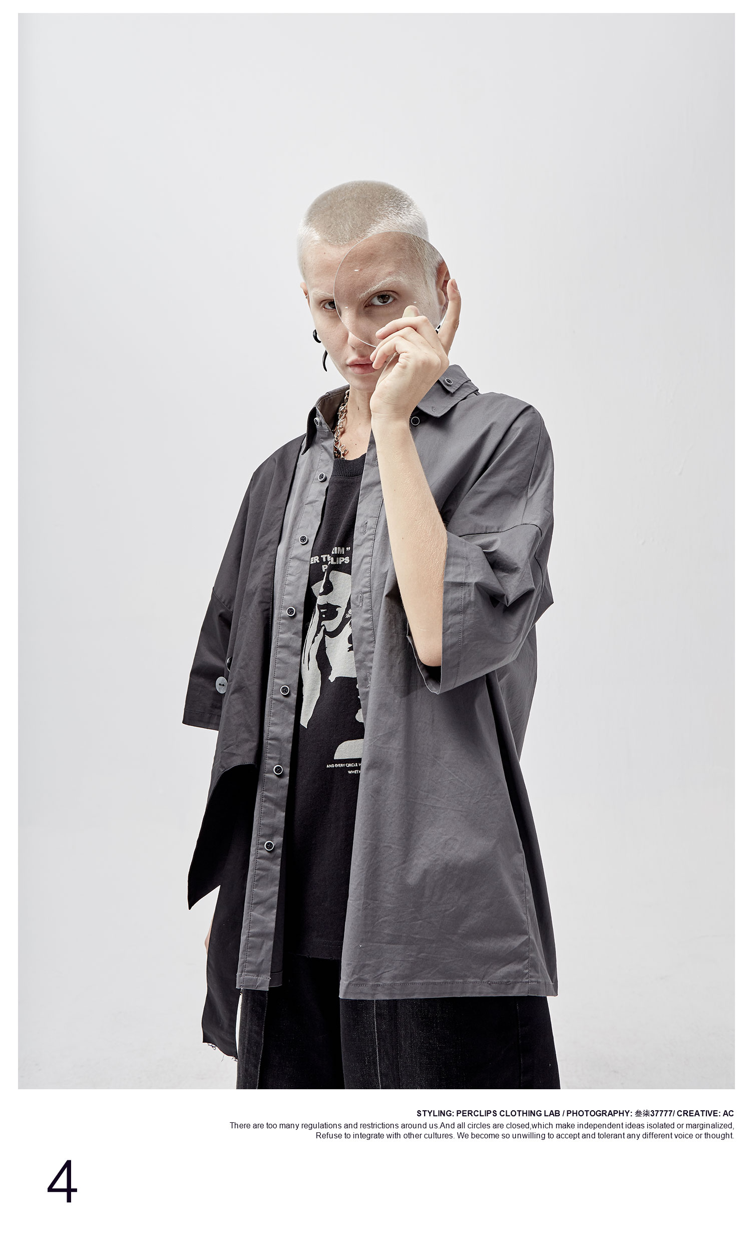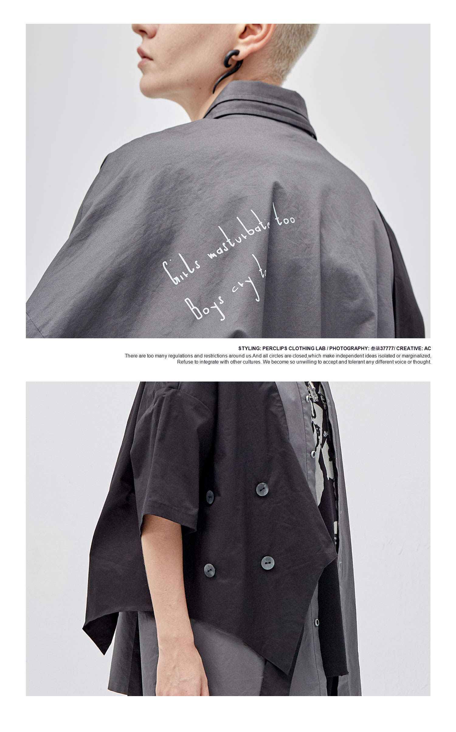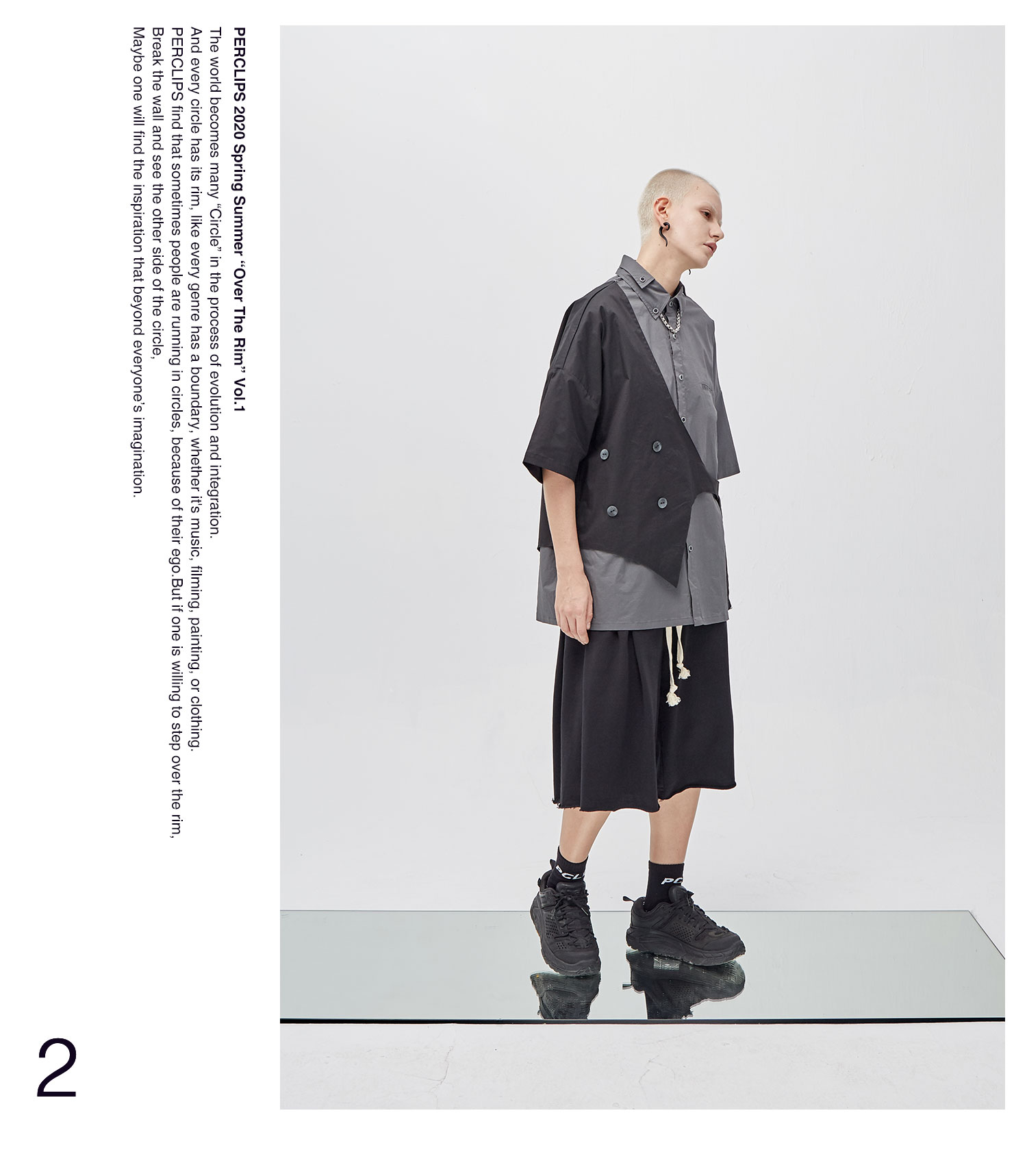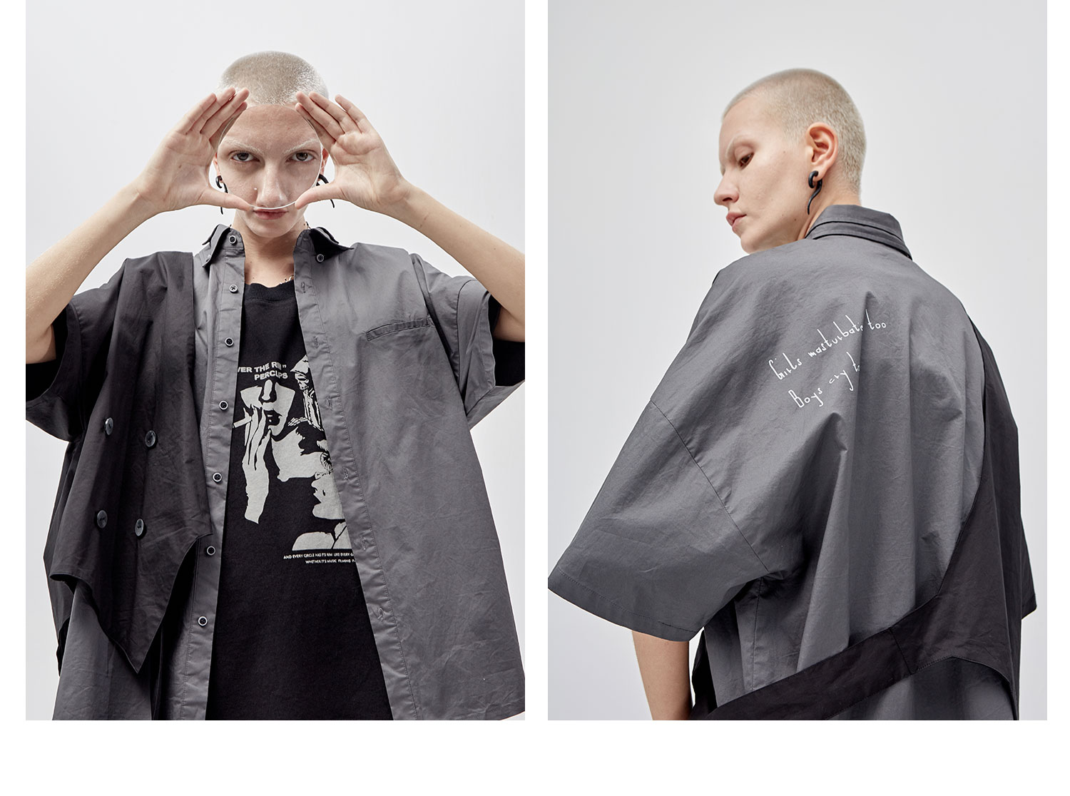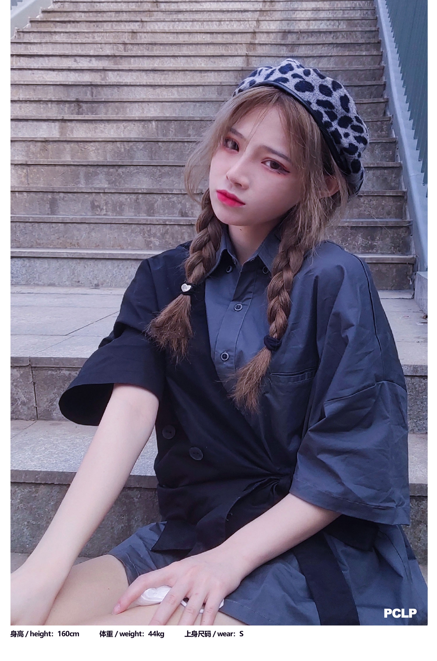 PCLP(PERCLIPS)假两件短袖衬衫国潮牌夏季工装日系港风半袖衬衣男