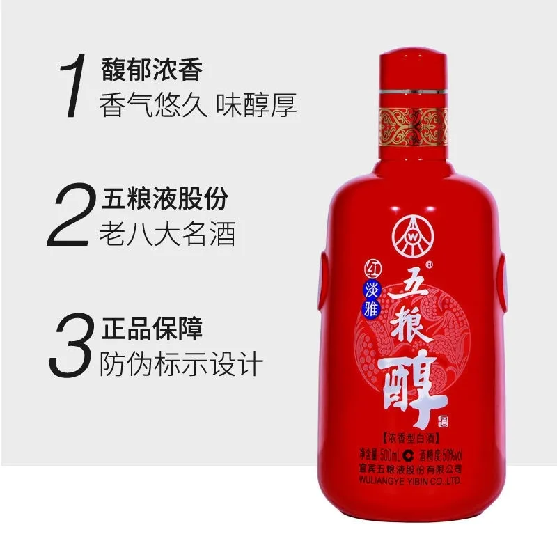 五粮醇红淡雅 50度浓香型白酒 整箱500ml*6瓶包邮