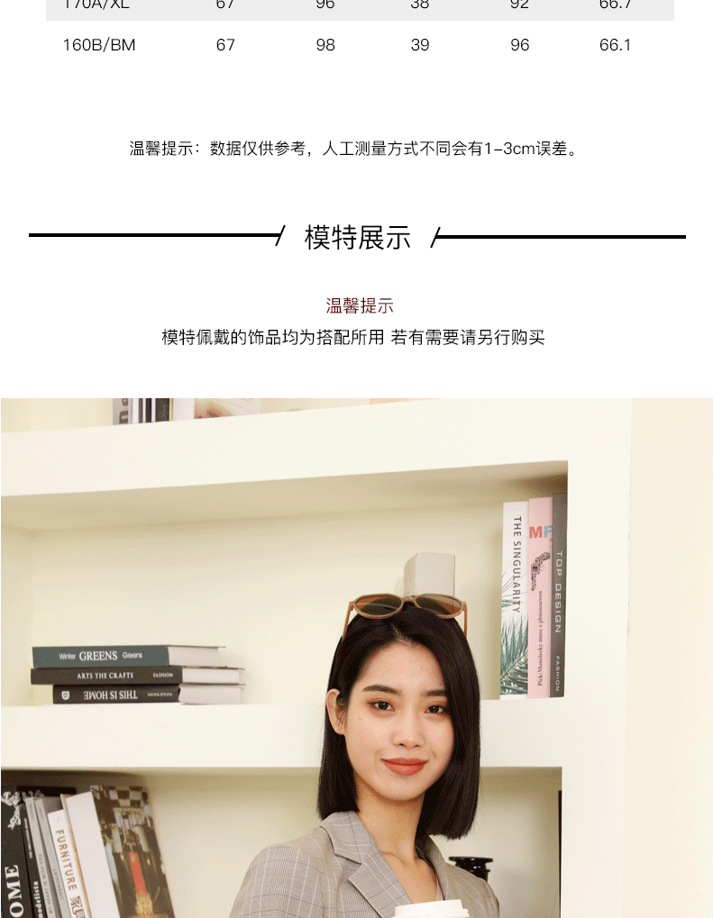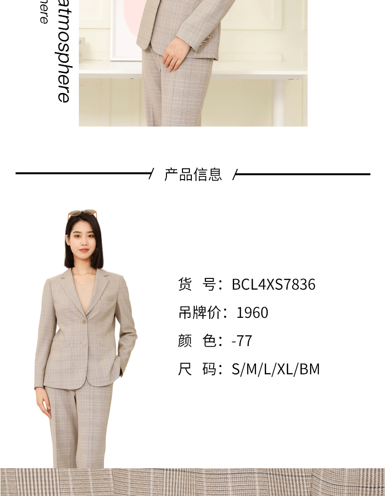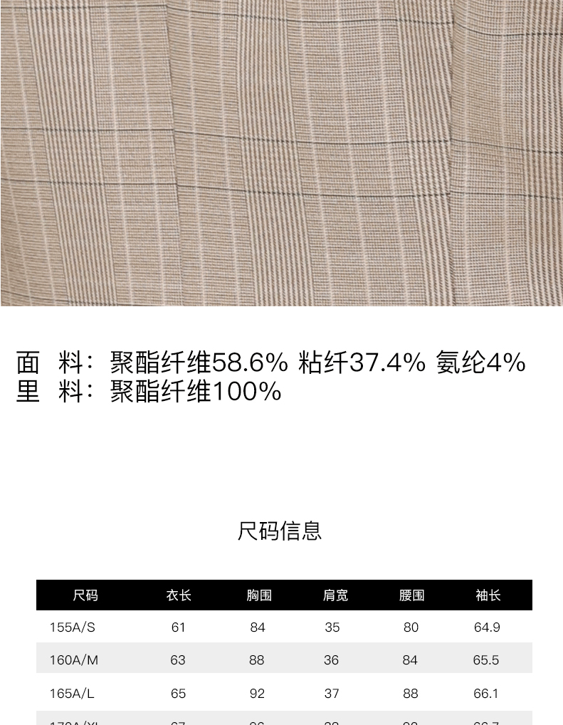 宗洋zongyang女装2022春秋款上衣常规休闲格子小西装外套西服BCL4XS7836-77