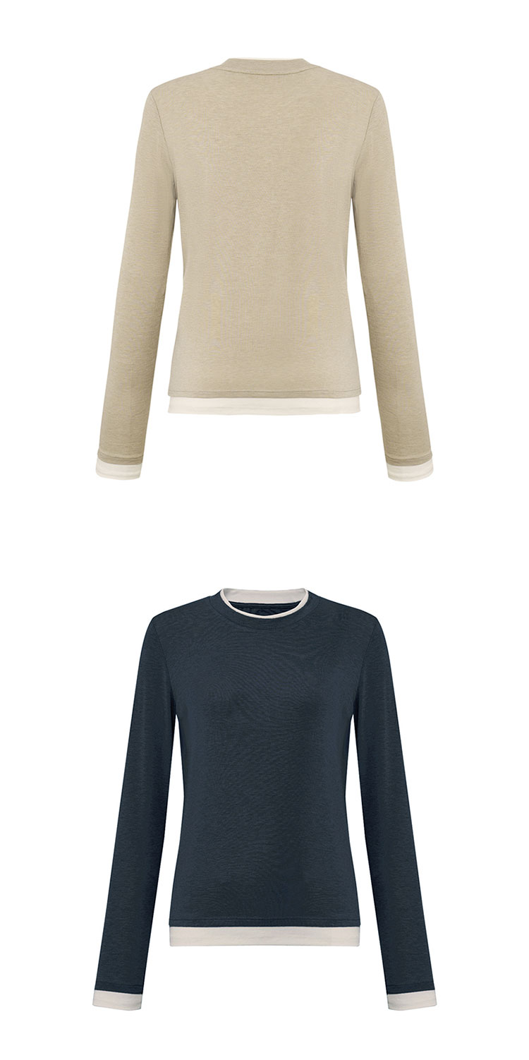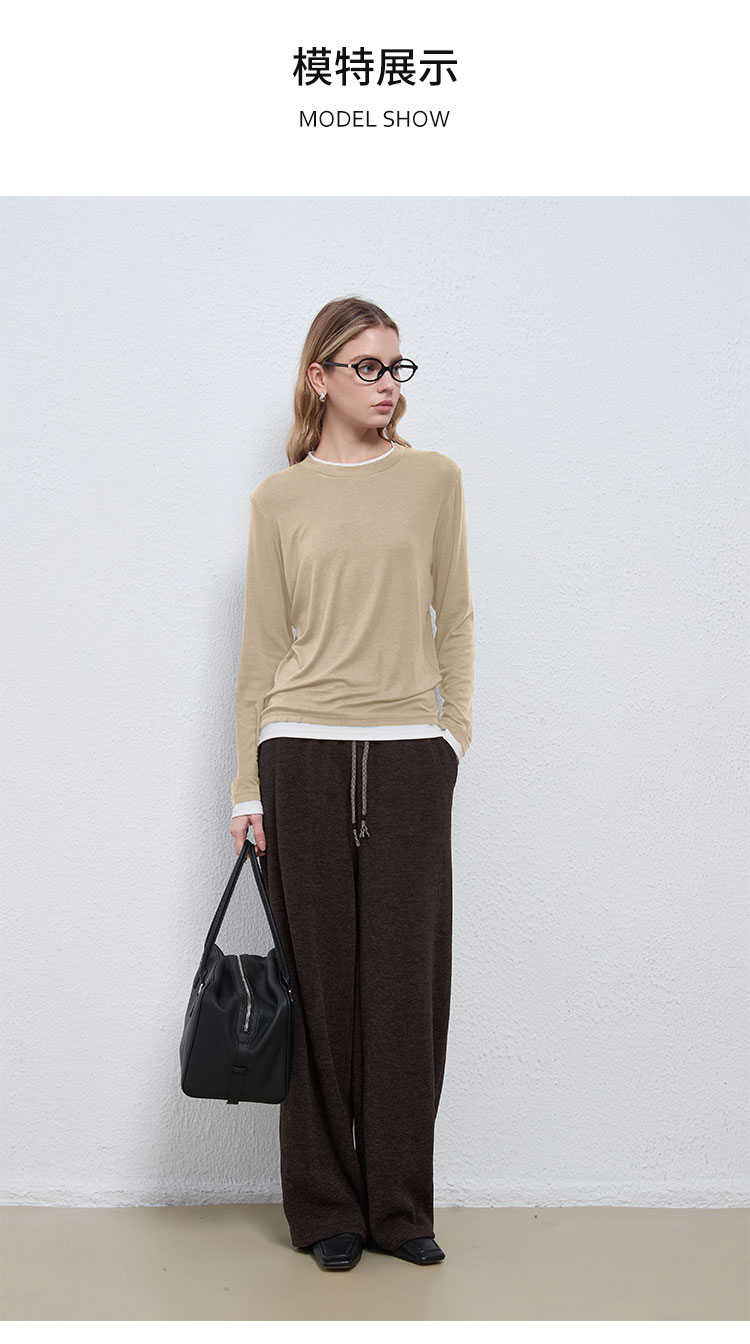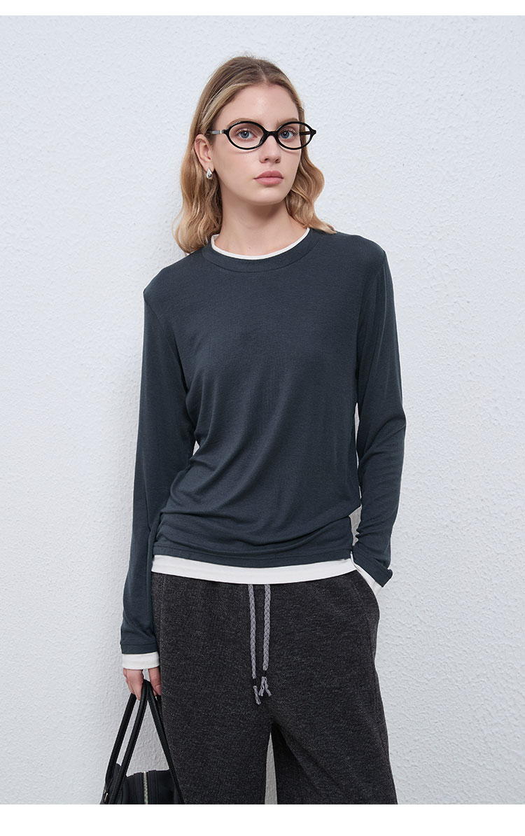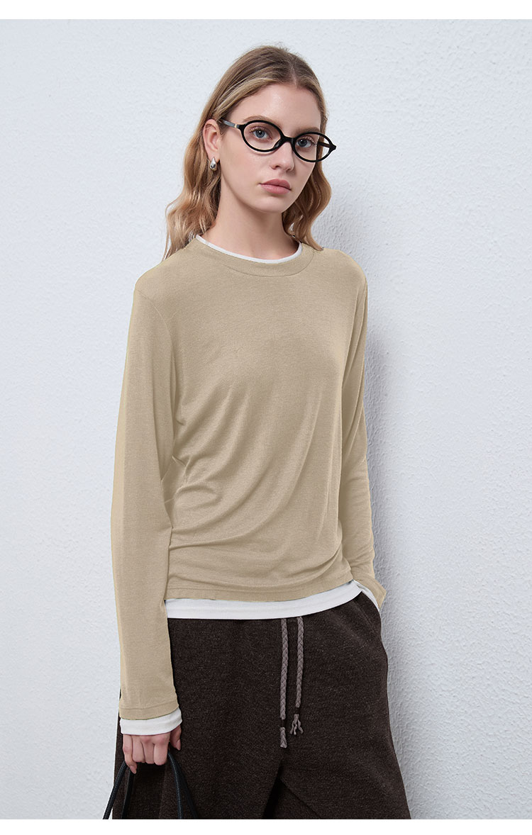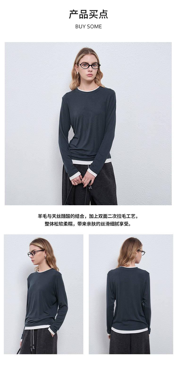 【2件9折】【Petit Bari】(多色)简约软糯天丝羊毛圆领假两件上衣
