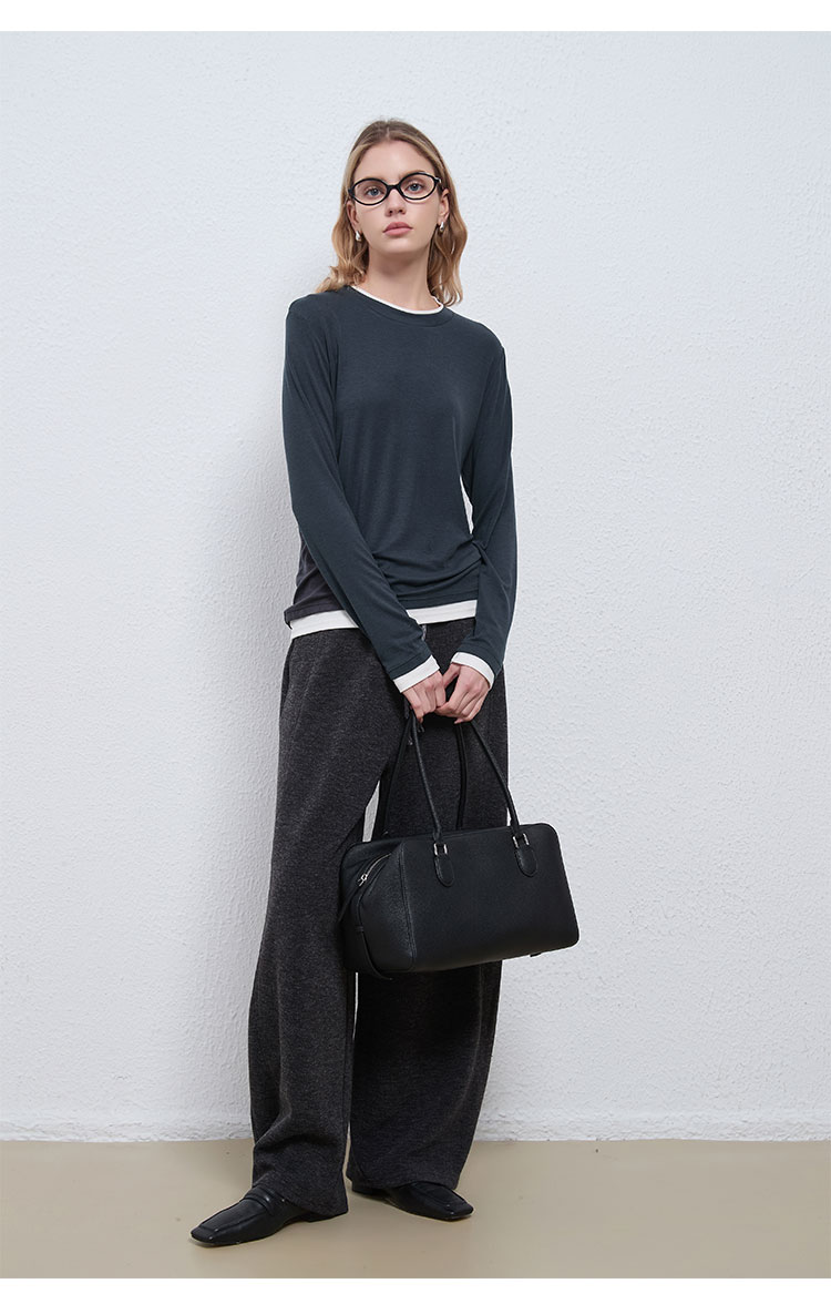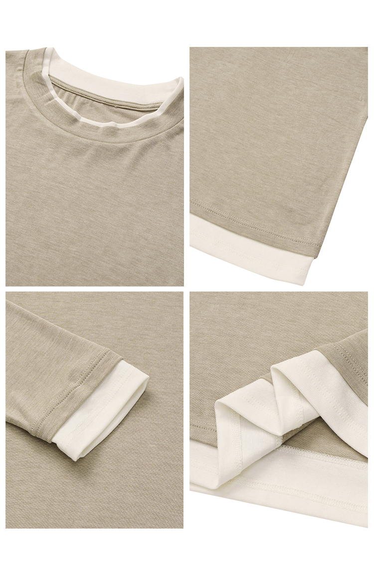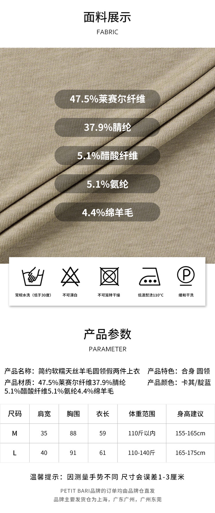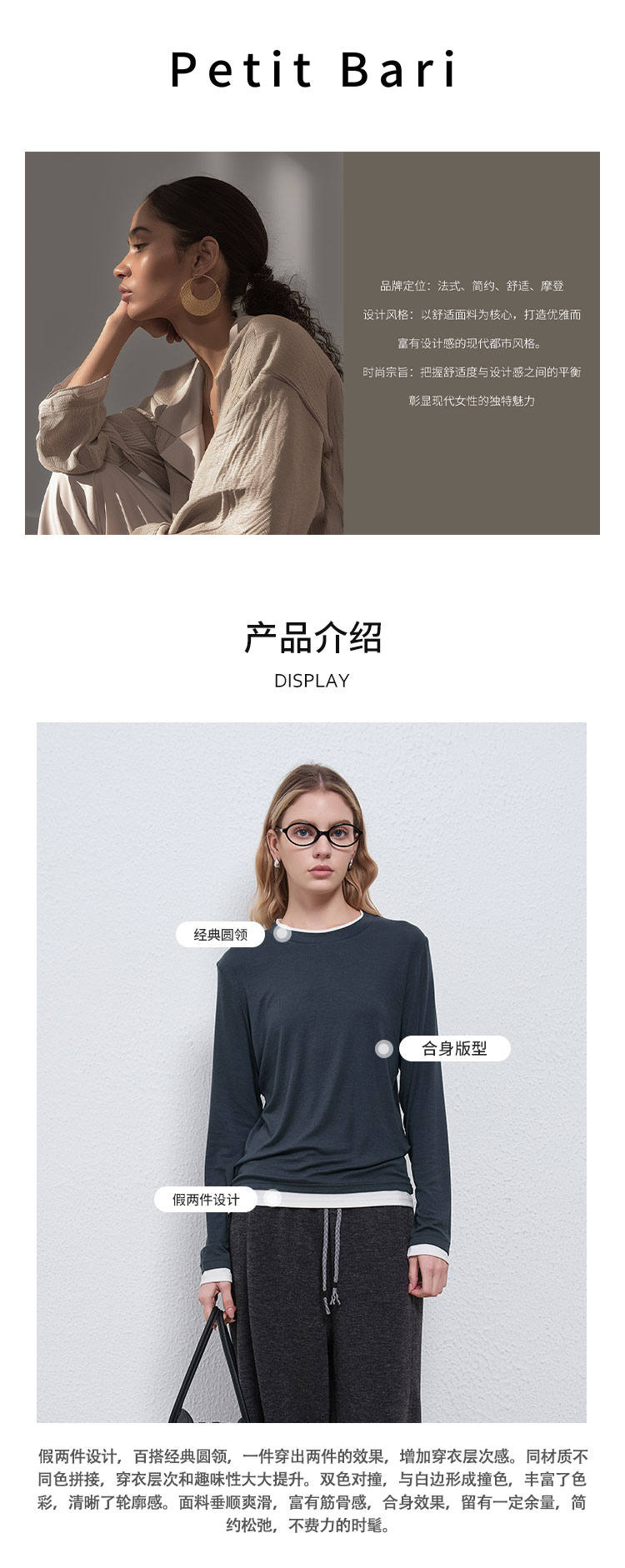 【2件9折】【Petit Bari】(多色)简约软糯天丝羊毛圆领假两件上衣