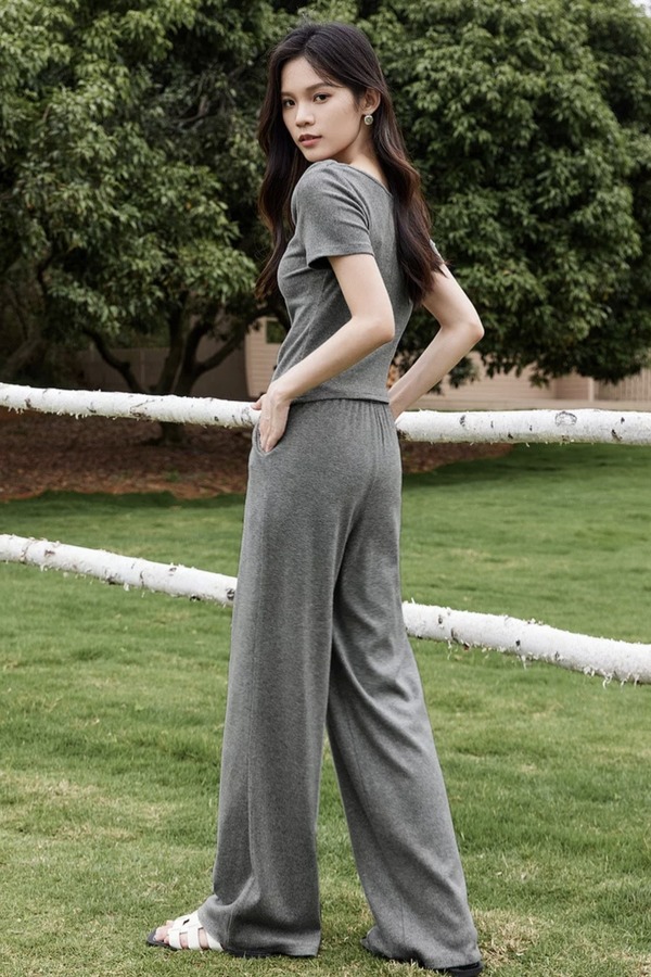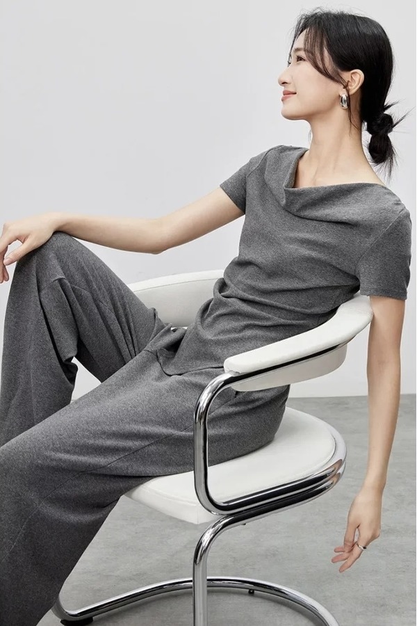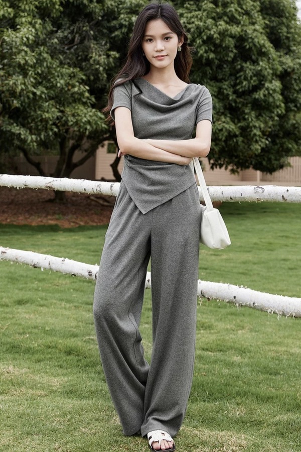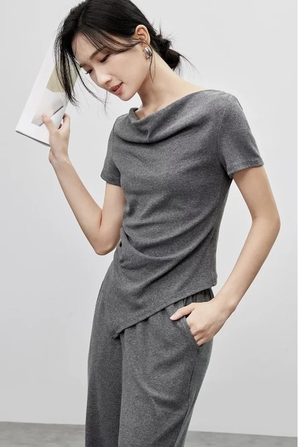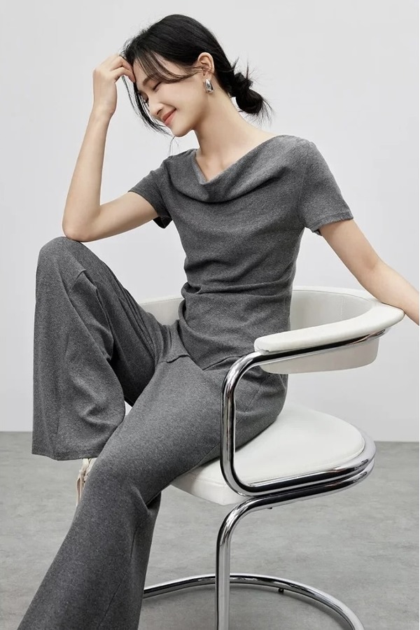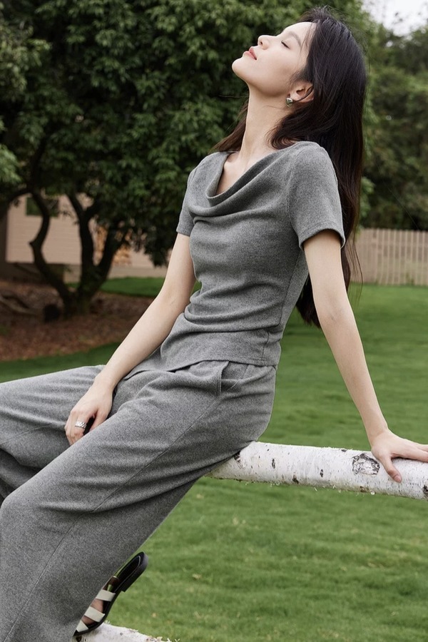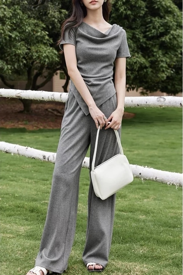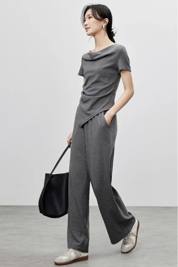 SENTUBILA尚都比拉 舒适休闲灰色荡领上衣长裤套装 21186