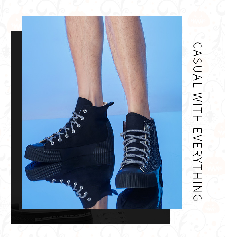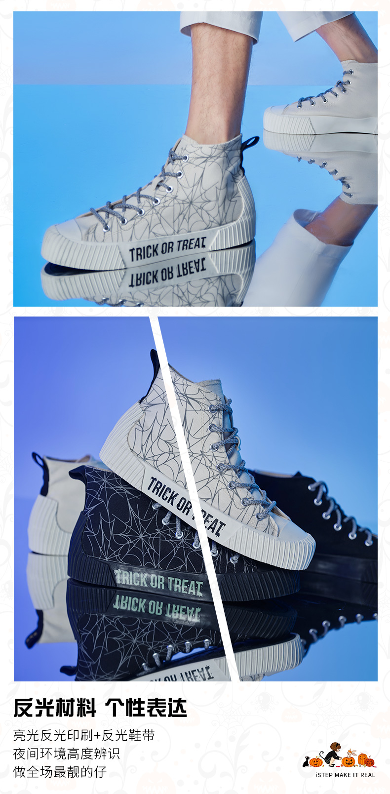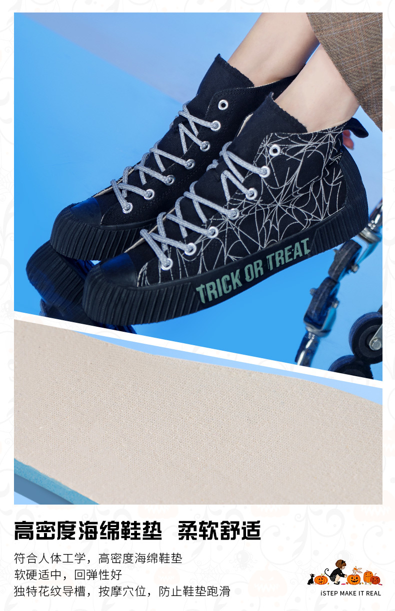 iSTEP夏季情侣款高帮帆布鞋光照变色潮流印花男鞋运动休闲女鞋