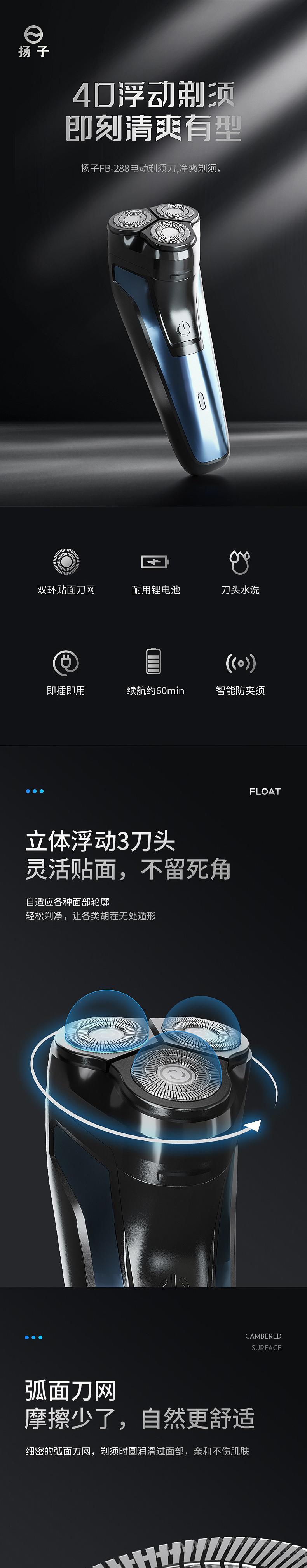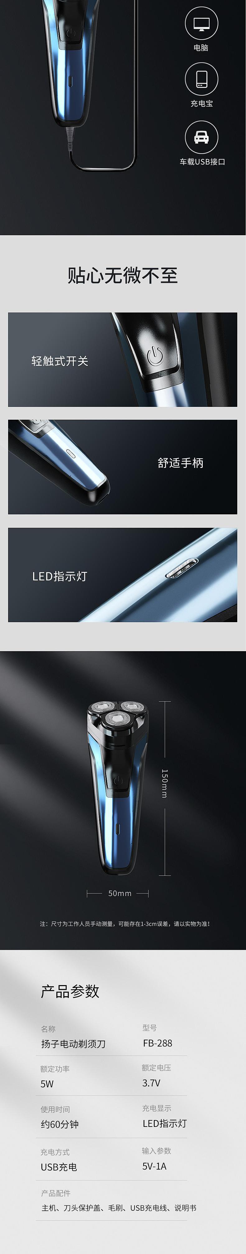 【自营】扬子 FB-288电动剃须刀 胡须刀送男友送长辈 智能高效60分钟超长续航双环贴面刀网
