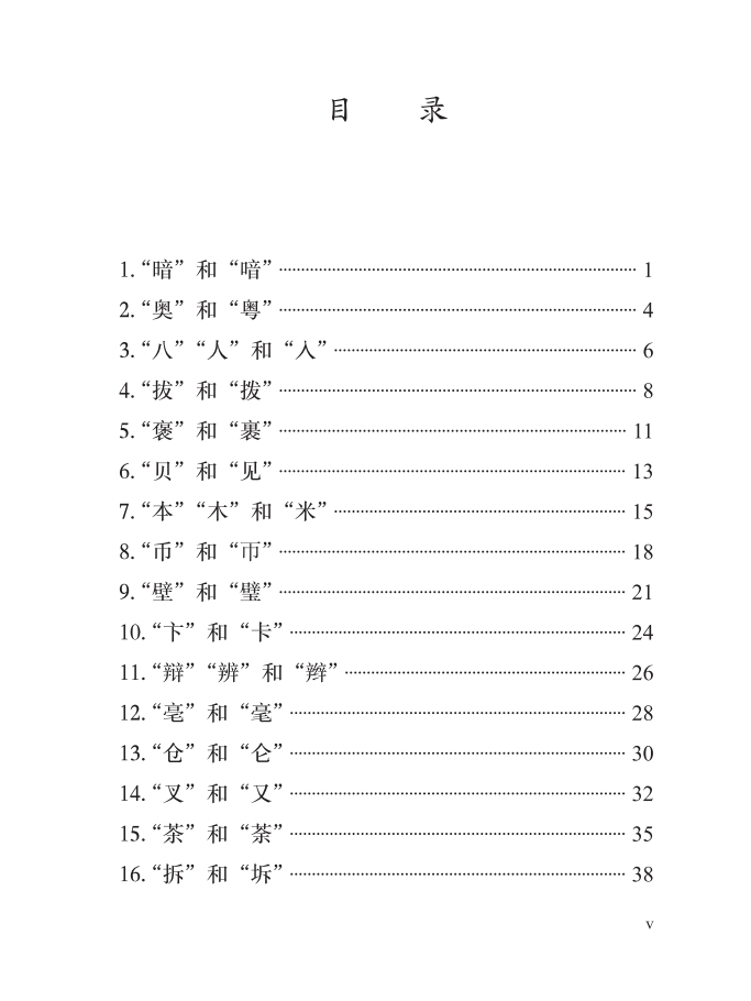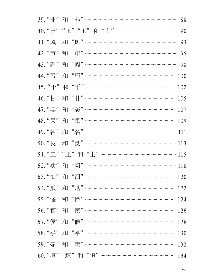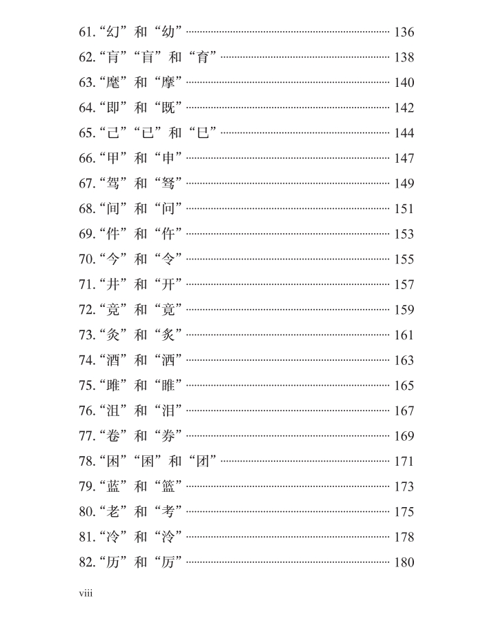 本书以《通用规范汉字表》收录的8105个字为依据,结合中小学语文教学发现的形近易混字情况,整理出139组常见形近易混字。书中主要从字源、字形演变、字义、字用等几个角度讲解易混字的差异。讲解汉字时能依据汉字字理,结合文献,阐明易混字差异之所在,以帮助读者快速区别形近易混字。本书写作尽量简明,篇幅简短,可读性强,对中小学汉字教学与学习,以及国际中文教育均有参考价值。