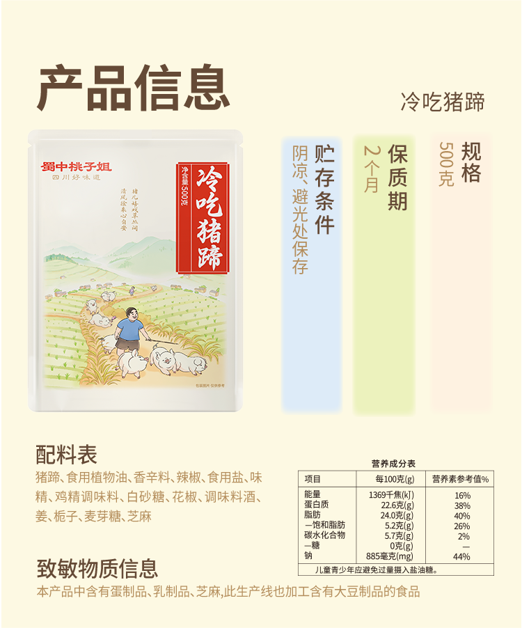 【自营】蜀中桃子姐冷吃猪蹄零食开袋即食500g/袋装