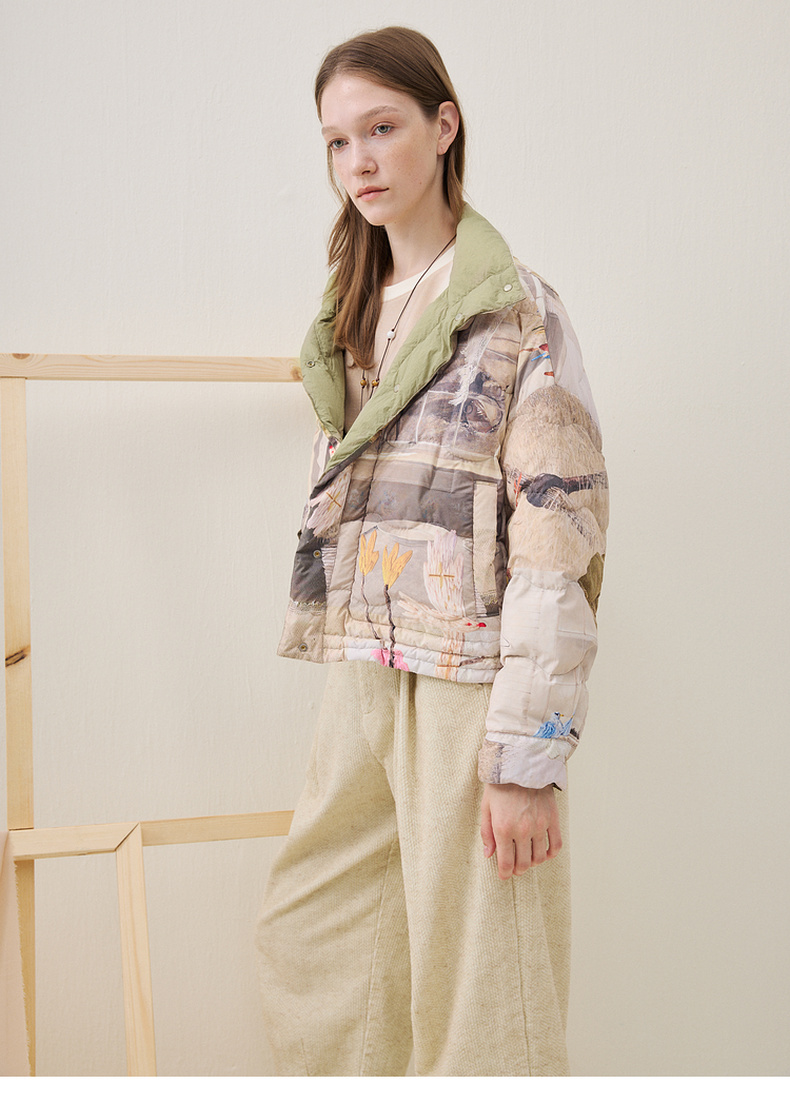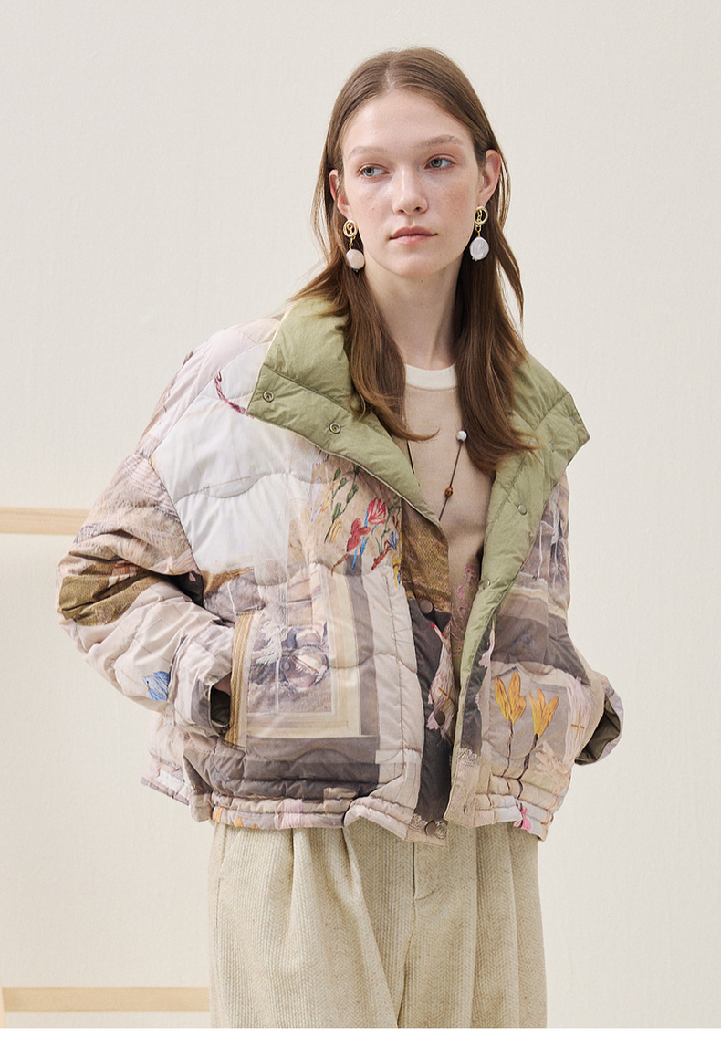 谜底两面穿花色羽绒服女2025冬新品复古主题花短款百搭254MY1610