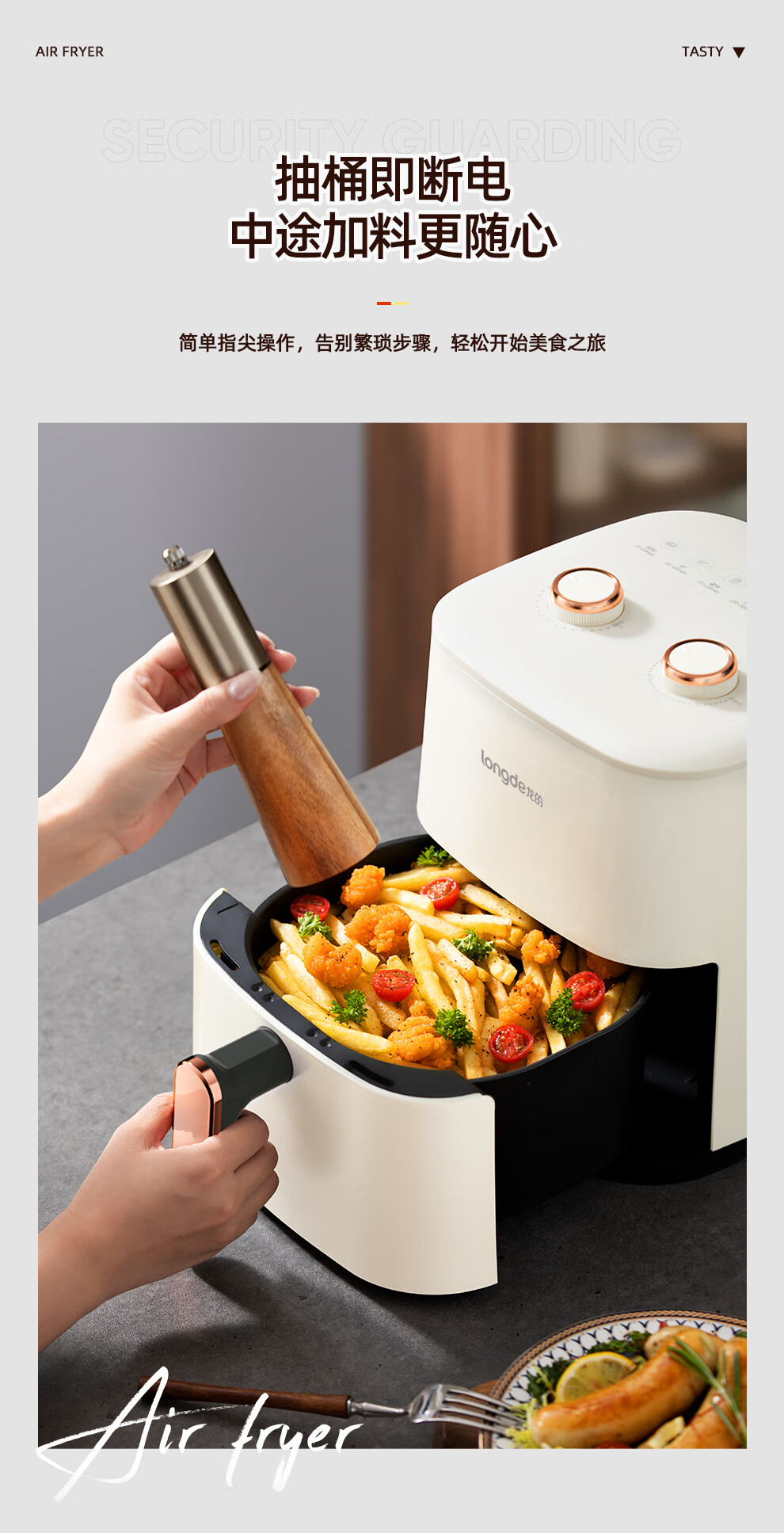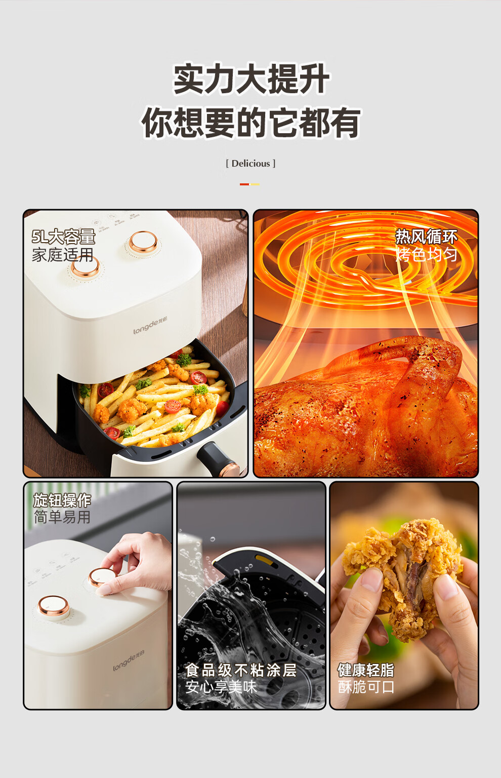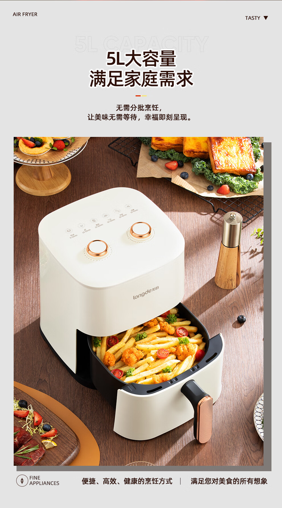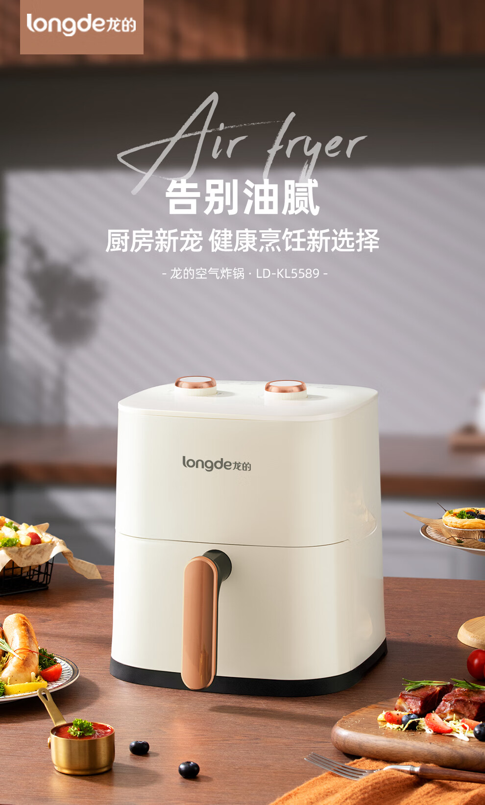 【小家电】龙的longde空气炸锅 家用智能不沾易清洗 360度热风循环准确定时无油煎炸薯条机 LD-KL5589 HF