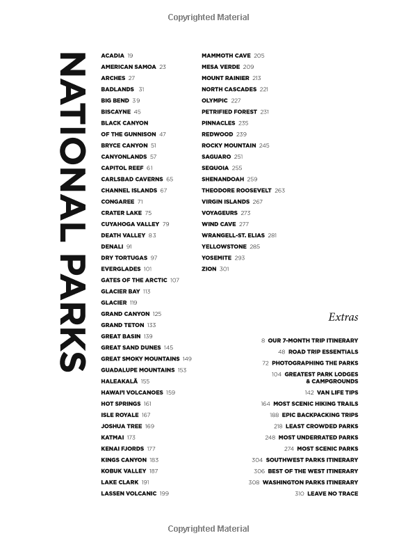 Coverage of all 59 US national parks, written from the firsthand perspective of the Hahnels, who have personally visited each park on one EPIC road trip