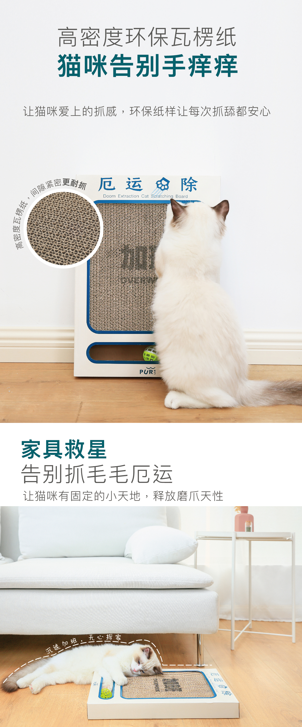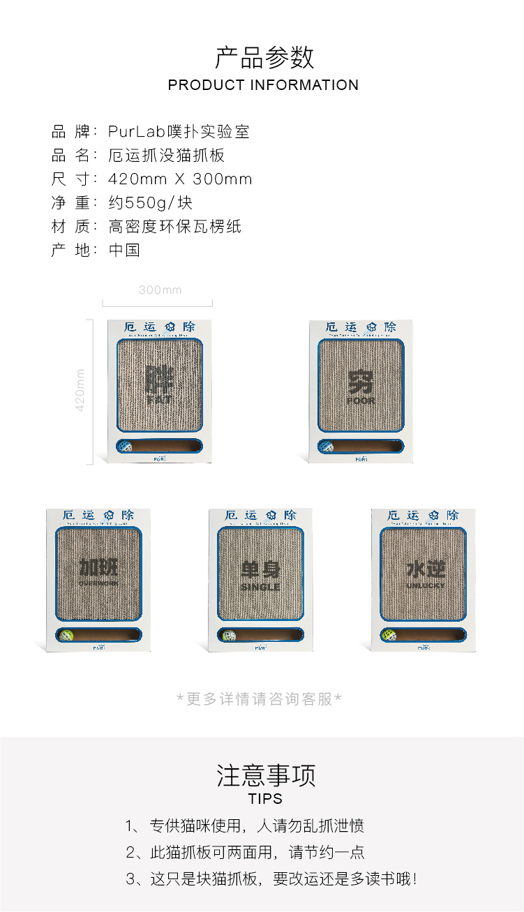 PurLab噗扑实验室厄运抓除猫抓板瓦楞纸磨爪耐抓耐磨猫玩具