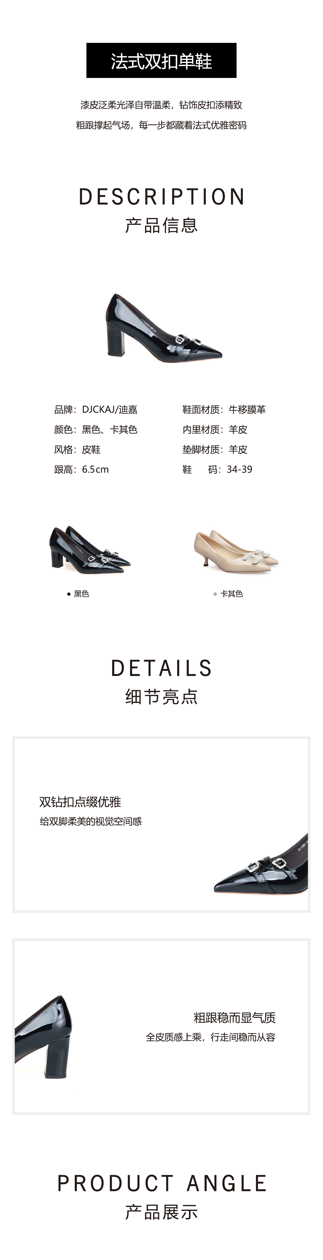 豪麟名鞋迪嘉女鞋皮鞋牛移膜革DJYYA52WP009黑色