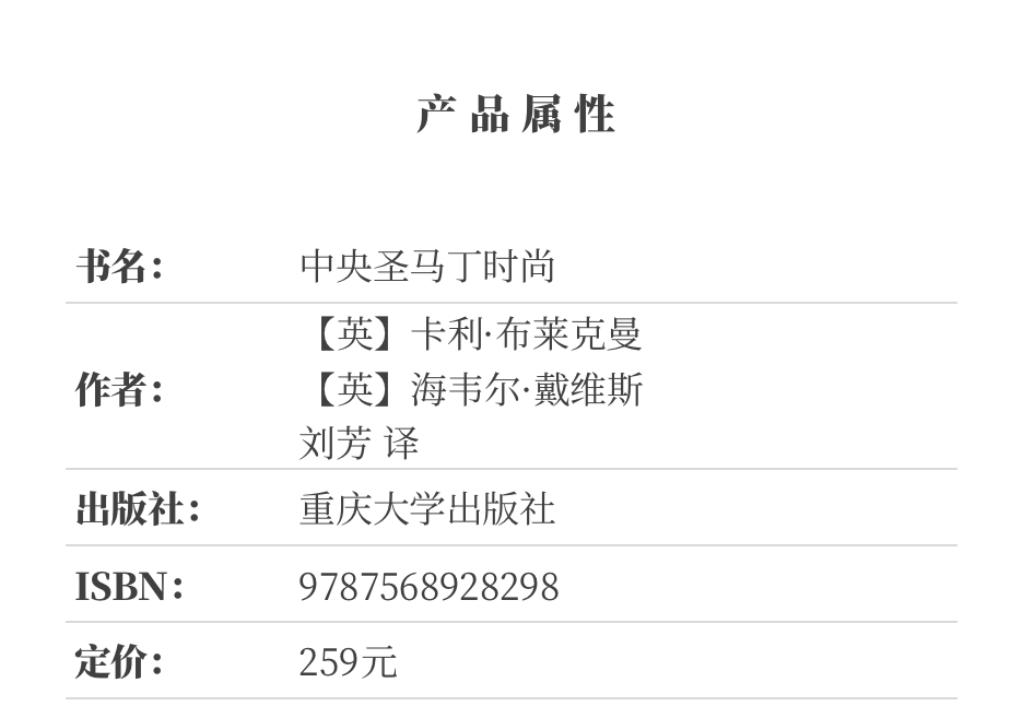 中央圣马丁时尚——【英】卡利·布莱克曼、【英】海韦尔·戴维斯 刘芳 译 重庆大学出版社
