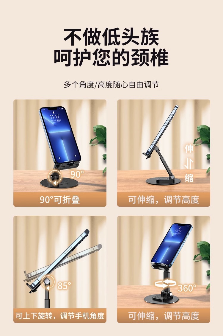 「9.9元包邮」360度旋转金属手机支架 桌面升降折叠平板通用铝合金支架数码配件