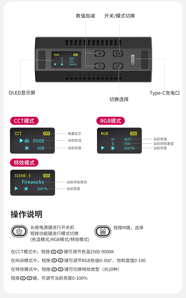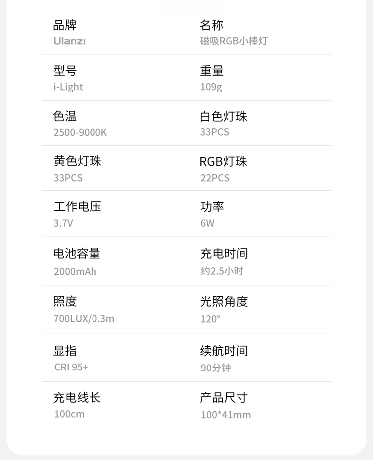 Ulanzi优篮子 I-light rgb棒灯手持led补光灯外拍打光室内夜景光绘彩色直播