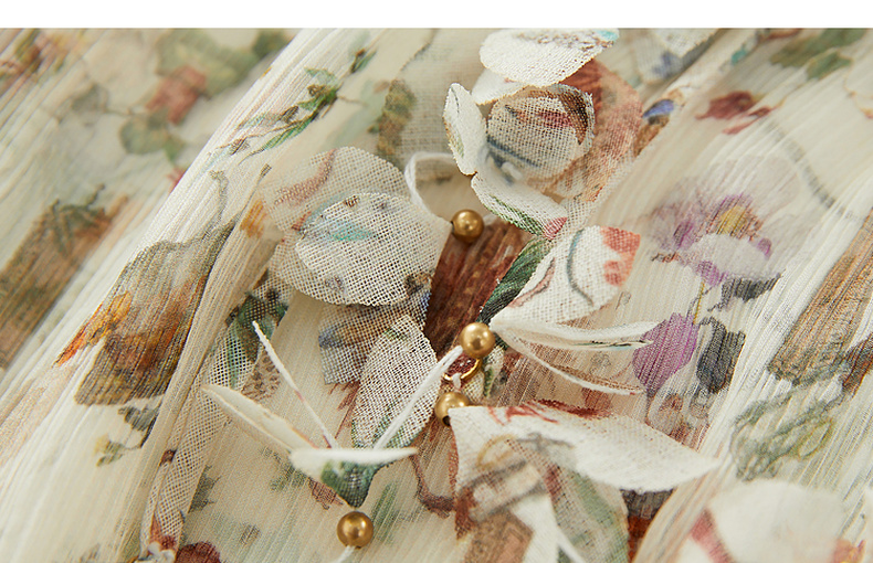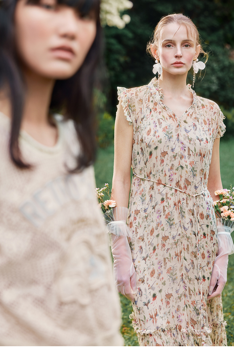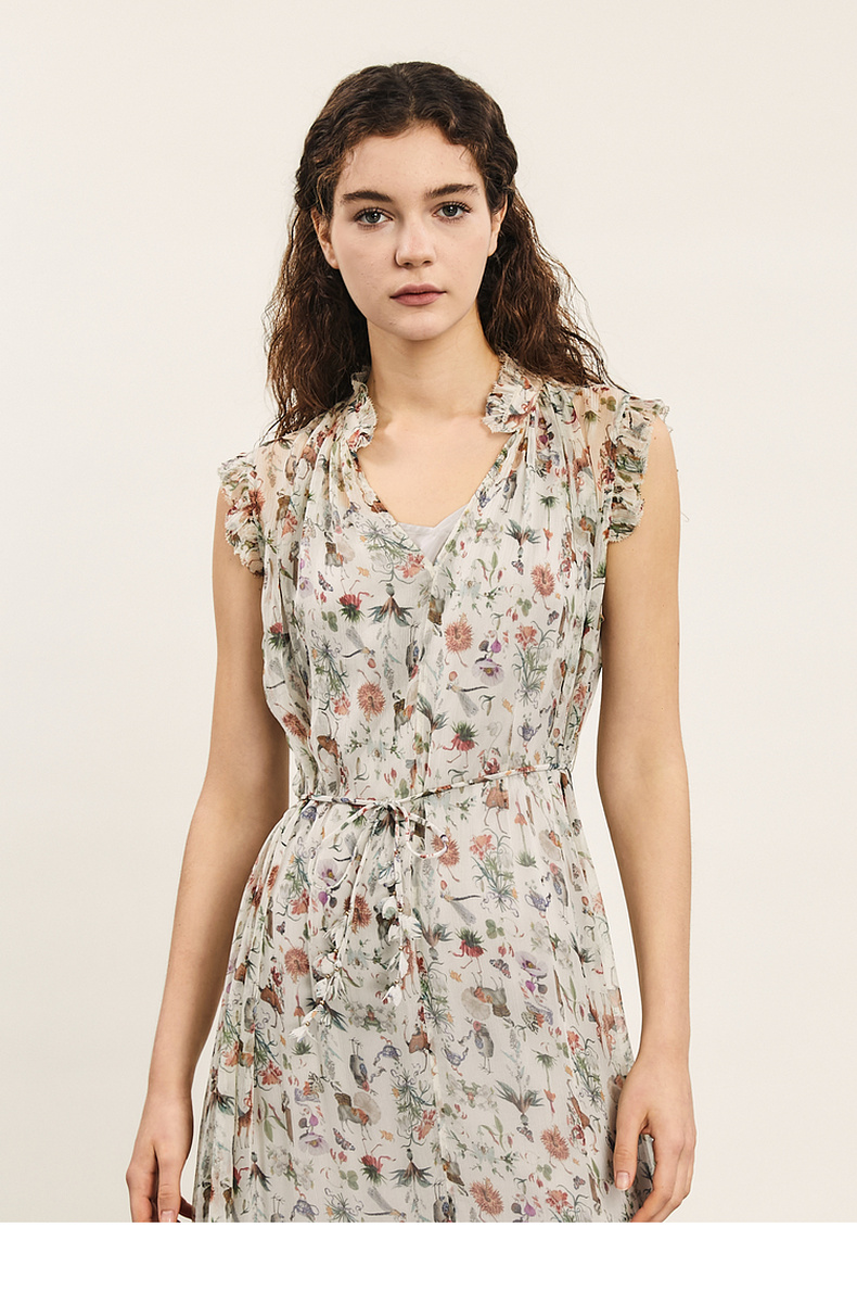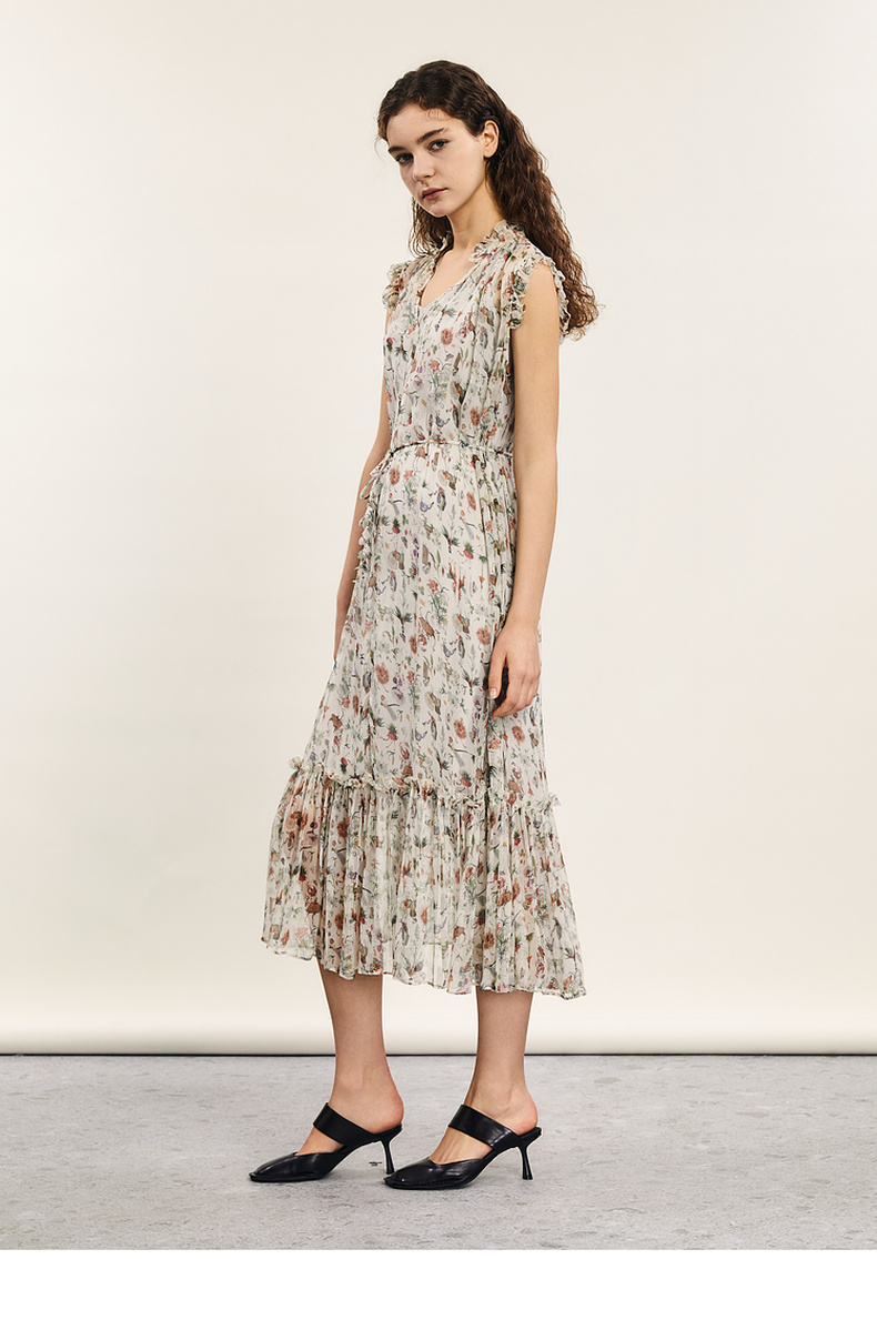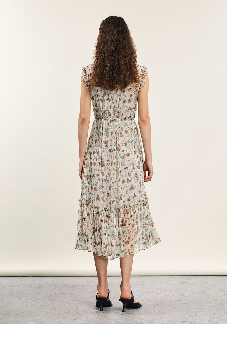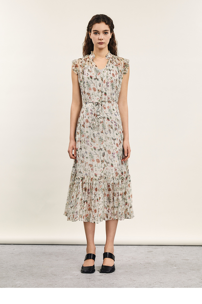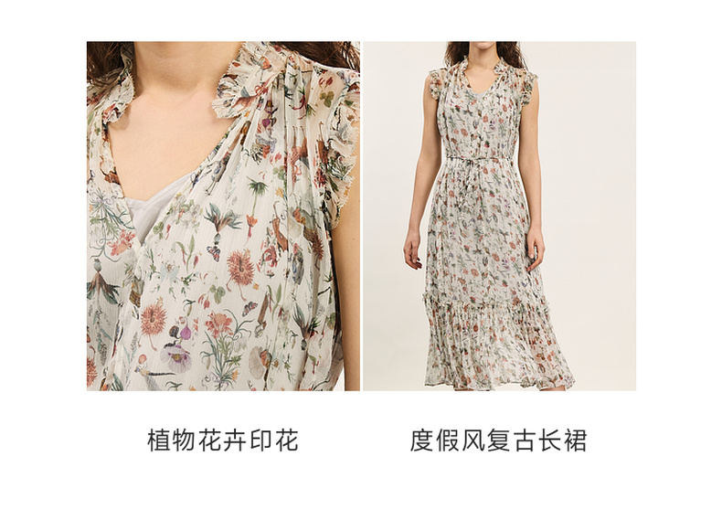 谜底碎花连衣裙2024年夏季新品度假风两件式桑蚕丝长裙242GL0510