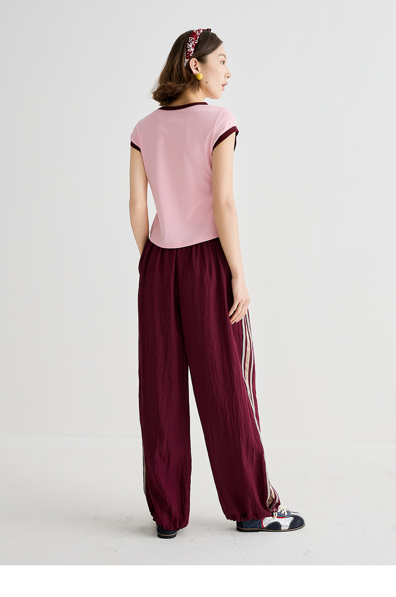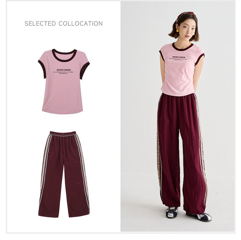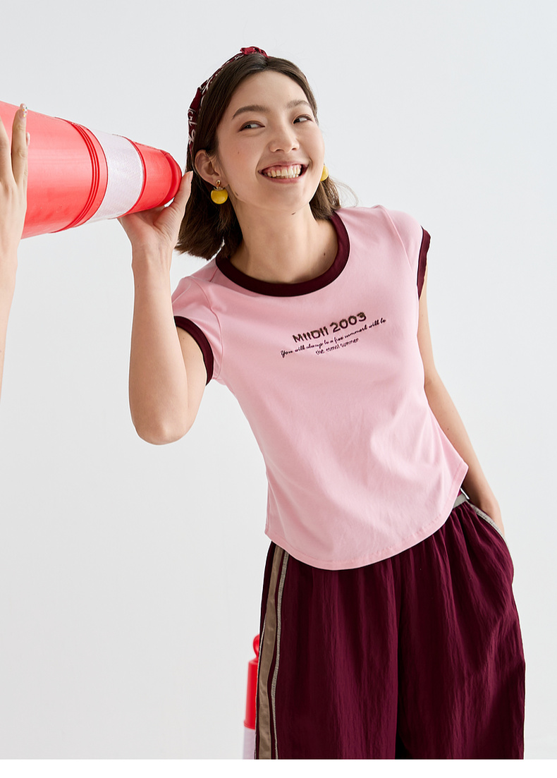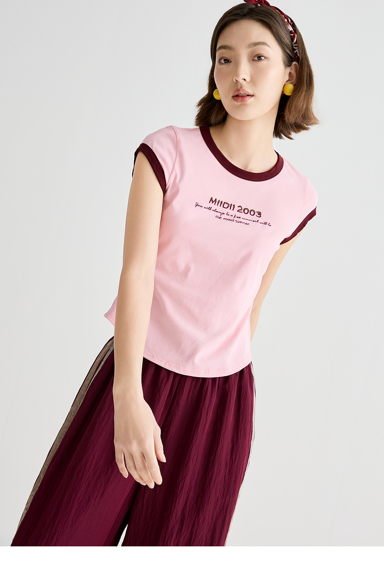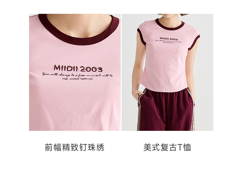 谜底T恤短袖女2025夏季新品休闲日常撞色紧身X型短上衣252MT0525